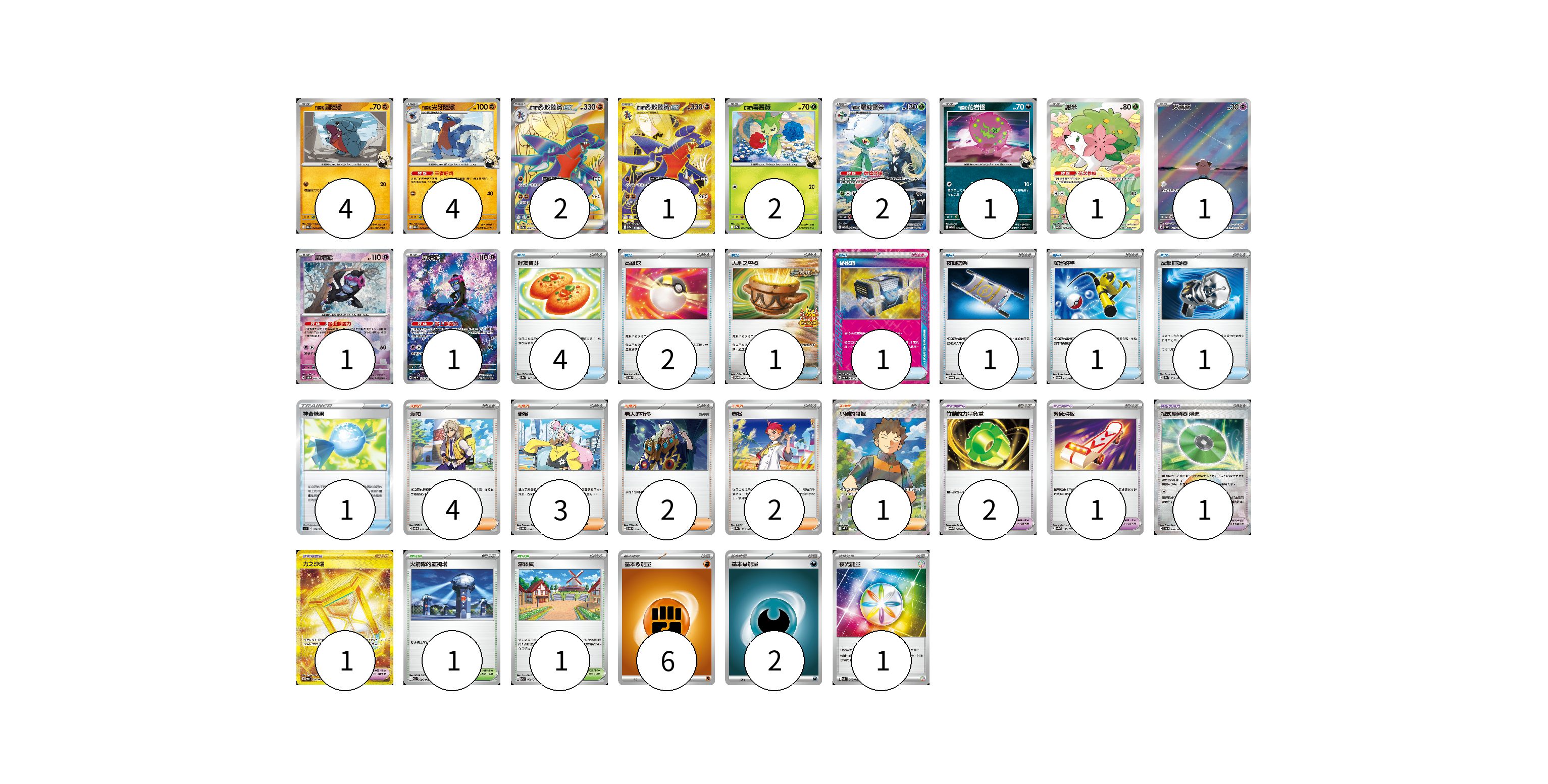 牌組構築方案 以此牌組為基礎新構築牌組 顯示卡面 顯示列表 寶可夢卡(20) 4 4 2 1 2 2 1 1 1 1 1 寶可夢道具(5) 2 1 1 1 物品卡(12) 4 2 1 1 1 1 1 1 支援者卡(12) 4 3 2 2 1 競技場卡(2) 1 1 能量卡(9) 6 2 1 寶可夢卡(20) 卡牌名稱 張數 卡牌名稱 張數 <竹蘭的>圓陸鯊 SV9a 042/063 04 <竹蘭的>尖牙陸鯊 SV9a 043/063 04 <竹蘭的>烈咬陸鯊ex SV9a 080/063 02 <竹蘭的>烈咬陸鯊ex SV9a 091/063 01 <竹蘭的>毒薔薇 SV9a 004/063 02 <竹蘭的>羅絲雷朵 SV9a 065/063 02 <竹蘭的>花岩怪 SV9a 050/063 01 謝米 SV9a 066/063 01 皮寶寶 SV3 113/108 01 願增猿 SV8a 075/187 01 願增猿 SV6 107/101 01 寶可夢道具(5) 卡牌名稱 張數 卡牌名稱 張數 竹蘭的力量負重 SV9a 060/063 02 緊急滑板 SV8a 153/187 01 招式學習器 演進 SV8a 160/187 01 力之沙漏 SV6a 094/064 01 物品卡(12) 卡牌名稱 張數 卡牌名稱 張數 好友寶芬 SV8a 147/187 04 高級球 SVOD 012/020 02 大地之容器 SV-P 084/SV-P 01 秘密箱 SV6 092/101 01 夜間擔架 SVOM 016/021 01 厲害釣竿 SVOD 010/020 01 反擊捕捉器 SV8a 139/187 01 神奇糖果 SI 376/414 01 支援者卡(12) 卡牌名稱 張數 卡牌名稱 張數 派帕 SVOD 018/020 04 奇樹 SVOD 016/020 03 老大的指令 SVOD 019/020 02 赤松 SV8a 163/187 02 小剛的發掘 SV9 123/100 01 競技場卡(2) 卡牌名稱 張數 卡牌名稱 張數 火箭隊的監視塔 SV10 096/098 01 深缽鎮 SVK 039/042 01 能量卡(9) 卡牌名稱 張數 卡牌名稱 張數 基本【鬥】能量 SVHK FIG 06 基本【惡】能量 SVF DAR 02 夜光能量 SVK 042/042 01 以此牌組為基礎新構築牌組 牌組編碼 baUKxX-WVsIAm-lwjhqX copy 列印牌組單 牌組編碼已複製 分享至SNS