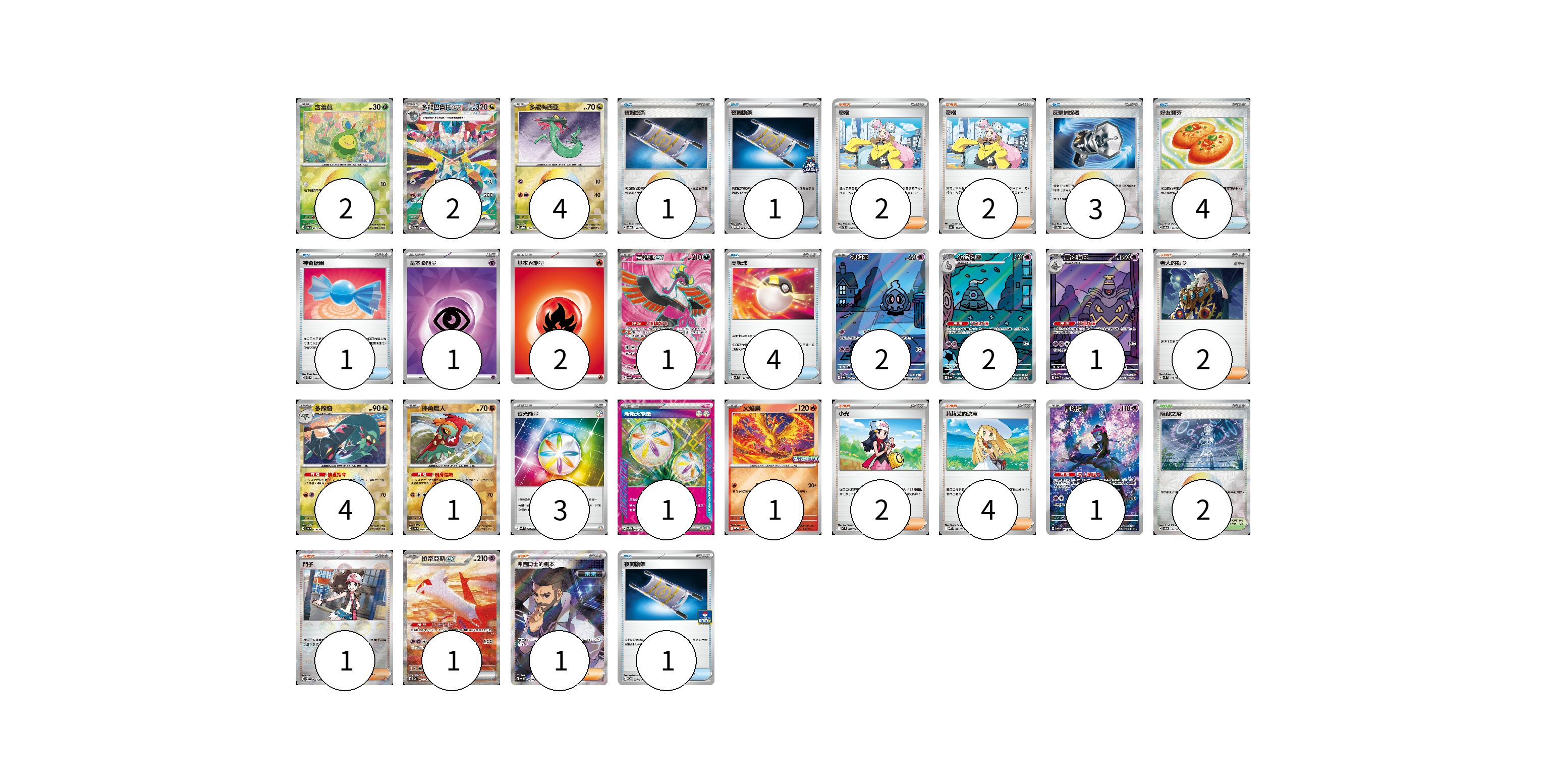牌組構築方案 以此牌組為基礎新構築牌組 顯示卡面 顯示列表 寶可夢卡(22) 2 2 4 1 2 2 1 4 1 1 1 1 寶可夢道具(2) 2 物品卡(15) 1 1 3 4 1 4 1 支援者卡(12) 2 2 2 4 1 1 競技場卡(2) 2 能量卡(7) 1 2 3 1 寶可夢卡(22) 卡牌名稱 張數 卡牌名稱 張數 含羞苞 SV8a 001/187 02 多龍巴魯托ex SV8a 221/187 02 多龍梅西亞 SV8a 118/187 04 吉雉雞ex SV6a 081/064 01 夜巡靈 SV6a 068/064 02 彷徨夜靈 SV6a 069/064 02 黑夜魔靈 SV6a 070/064 01 多龍奇 SV8a 119/187 04 摔角鷹人 SV8a 084/187 01 火焰鳥 M-P 022/M-P 01 願增猿 SV6 107/101 01 拉帝亞斯ex SV7a 087/064 01 寶可夢道具(2) 卡牌名稱 張數 卡牌名稱 張數 奇樹 SVTL 018/021 02 物品卡(15) 卡牌名稱 張數 卡牌名稱 張數 夜間擔架 SV8a 151/187 01 夜間擔架 SV-P 204/SV-P 01 反擊捕捉器 SV8a 139/187 03 好友寶芬 SV8a 147/187 04 神奇糖果 SVTG 014/019 01 高級球 SVM 134/175 04 夜間擔架 SV-P 227/SV-P 01 支援者卡(12) 卡牌名稱 張數 卡牌名稱 張數 奇樹 SV4a 174/190 02 老大的指令 SVM 172/175 02 小光 M2 077/080 02 莉莉艾的決意 MBD 021/022 04 鬥子 SV11W 085/086 01 弗圖博士的劇本 SV4M 086/066 01 競技場卡(2) 卡牌名稱 張數 卡牌名稱 張數 阻礙之塔 SV8a 181/187 02 能量卡(7) 卡牌名稱 張數 卡牌名稱 張數 基本【超】能量 SVK PSY 01 基本【火】能量 SVHK FIR 02 夜光能量 SVK 042/042 03 新衝天能量 SV5K 071/071 01 以此牌組為基礎新構築牌組 牌組編碼 bfukNC-OBrvfe-GpuQYG copy 列印牌組單 牌組編碼已複製 分享至SNS