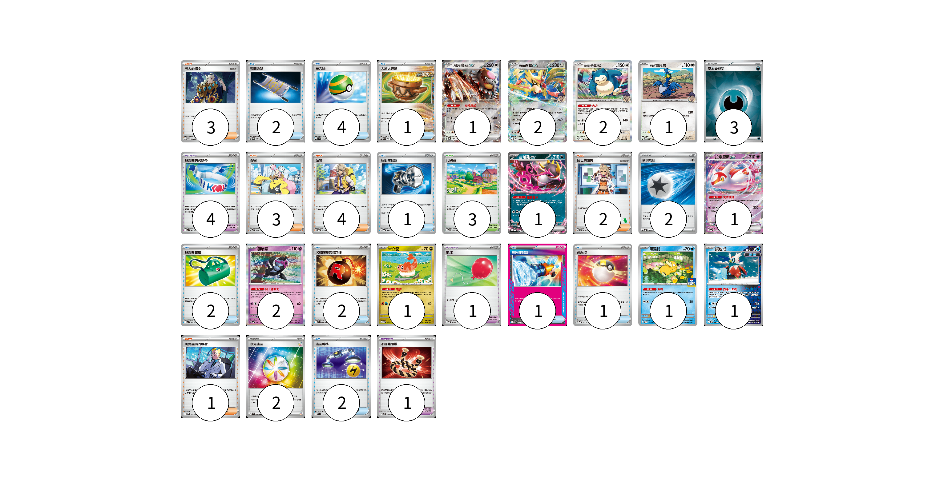 牌組構築方案 以此牌組為基礎新構築牌組 顯示卡面 顯示列表 寶可夢卡(13) 1 2 2 1 1 1 2 1 1 1 寶可夢道具(5) 4 1 物品卡(17) 2 4 1 1 2 2 1 1 1 2 支援者卡(13) 3 3 4 2 1 競技場卡(3) 3 能量卡(7) 3 2 2 寶可夢卡(13) 卡牌名稱 張數 卡牌名稱 張數 月月熊 赫月ex SV8a 134/187 01 赫普的蒼響ex SV9 069/100 02 赫普的卡比獸 SV9 075/100 02 赫普的古月鳥 SV9 087/100 01 吉雉雞ex SVOD 004/020 01 拉帝亞斯ex SV7a 019/064 01 願增猿 SV8a 075/187 02 米立龍 MBD 010/022 01 可達鴨 SV-P 220/SV-P 01 鐵包袱 SV4M 020/066 01 寶可夢道具(5) 卡牌名稱 張數 卡牌名稱 張數 赫普的講究頭帶 SV9 092/100 04 不服輸頭帶 SVTL 016/021 01 物品卡(17) 卡牌名稱 張數 卡牌名稱 張數 夜間擔架 SV8a 151/187 02 巢穴球 SV1S 070/078 04 大地之容器 SVK 012/042 01 反擊捕捉器 SV8a 139/187 01 赫普的包包 SV9 091/100 02 火箭隊的驚嚇炸彈 SV10 089/098 02 氣球 MBD 018/022 01 頂尖捕捉器 MBG 014/022 01 高級球 SVHK 013/022 01 能量轉移 SVM 127/175 02 支援者卡(13) 卡牌名稱 張數 卡牌名稱 張數 老大的指令 SVTR 019/021 03 奇樹 SVM 160/175 03 派帕 SVOD 018/020 04 博士的研究 SVI 063/066 02 阿克羅瑪的執著 SVOM 017/021 01 競技場卡(3) 卡牌名稱 張數 卡牌名稱 張數 化朗鎮 SV9 099/100 03 能量卡(7) 卡牌名稱 張數 卡牌名稱 張數 基本【惡】能量 SVOM DAR 03 噴射能量 SV8a 185/187 02 夜光能量 SVK 042/042 02 以此牌組為基礎新構築牌組 牌組編碼 cEmLcx-CHeJSv-hYPnFU copy 列印牌組單 牌組編碼已複製 分享至SNS