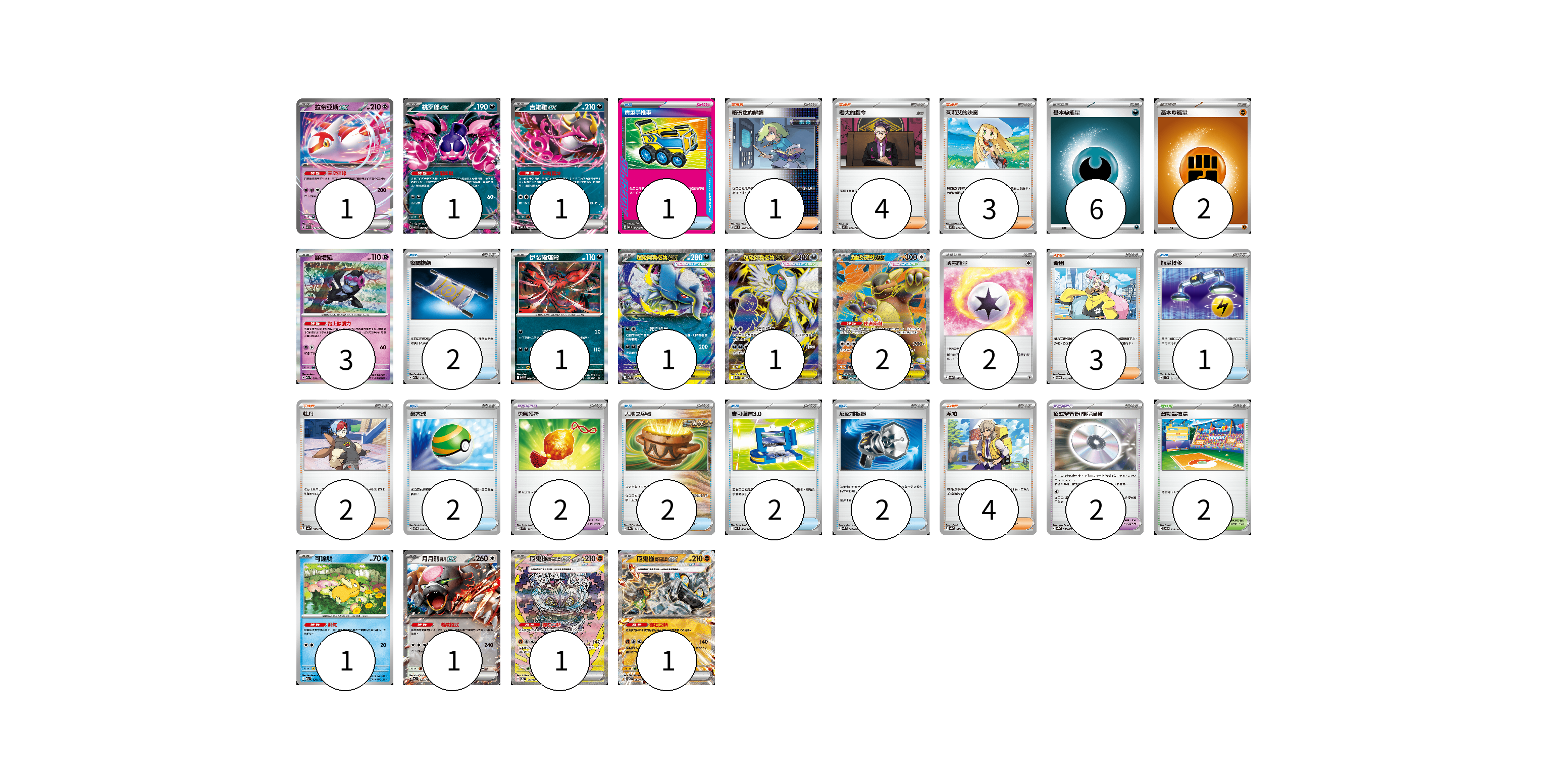 牌組構築方案 以此牌組為基礎新構築牌組 顯示卡面 顯示列表 寶可夢卡(15) 1 1 1 3 1 1 1 2 1 1 1 1 寶可夢道具(4) 2 2 物品卡(12) 1 2 1 2 2 2 2 支援者卡(17) 1 4 3 3 2 4 競技場卡(2) 2 能量卡(10) 6 2 2 寶可夢卡(15) 卡牌名稱 張數 卡牌名稱 張數 拉帝亞斯ex MC 312/742 01 桃歹郎ex MC 491/742 01 吉雉雞ex MC 489/742 01 願增猿 M2a 081/193 03 伊裴爾塔爾 M1L 040/063 01 超級阿勃梭魯ex M1L 038/063 01 超級阿勃梭魯ex M1L 079/063 01 超級袋獸ex M1S 080/063 02 可達鴨 M2a 032/193 01 月月熊 赫月 ex MC 625/742 01 厄鬼椪 礎石面具ex SV8a 216/187 01 厄鬼椪 礎石面具ex SV6 065/101 01 寶可夢道具(4) 卡牌名稱 張數 卡牌名稱 張數 勇氣護符 SVM 142/175 02 招式學習器 能量渦輪 SV3a 056/062 02 物品卡(12) 卡牌名稱 張數 卡牌名稱 張數 貴重手推車 MC 658/742 01 夜間擔架 M2a 159/193 02 能量轉移 SVC 011/021 01 巢穴球 SVTG 012/019 02 大地之容器 SV8a 143/187 02 寶可裝置3.0 MC 660/742 02 反擊捕捉器 SVK 009/042 02 支援者卡(17) 卡牌名稱 張數 卡牌名稱 張數 暗碼迷的解讀 MC 698/742 01 老大的指令 MC 724/742 04 莉莉艾的決意 MC 729/742 03 奇樹 SVOD 016/020 03 牡丹 SV4a 182/190 02 派帕 SV4a 180/190 04 競技場卡(2) 卡牌名稱 張數 卡牌名稱 張數 激動競技場 SV8 105/106 02 能量卡(10) 卡牌名稱 張數 卡牌名稱 張數 基本【惡】能量 MC DAR 06 基本【鬥】能量 MC FIG 02 薄霧能量 SV8a 186/187 02 以此牌組為基礎新構築牌組 牌組編碼 cSLUpp-IMcueX-YNQqqT copy 列印牌組單 牌組編碼已複製 分享至SNS