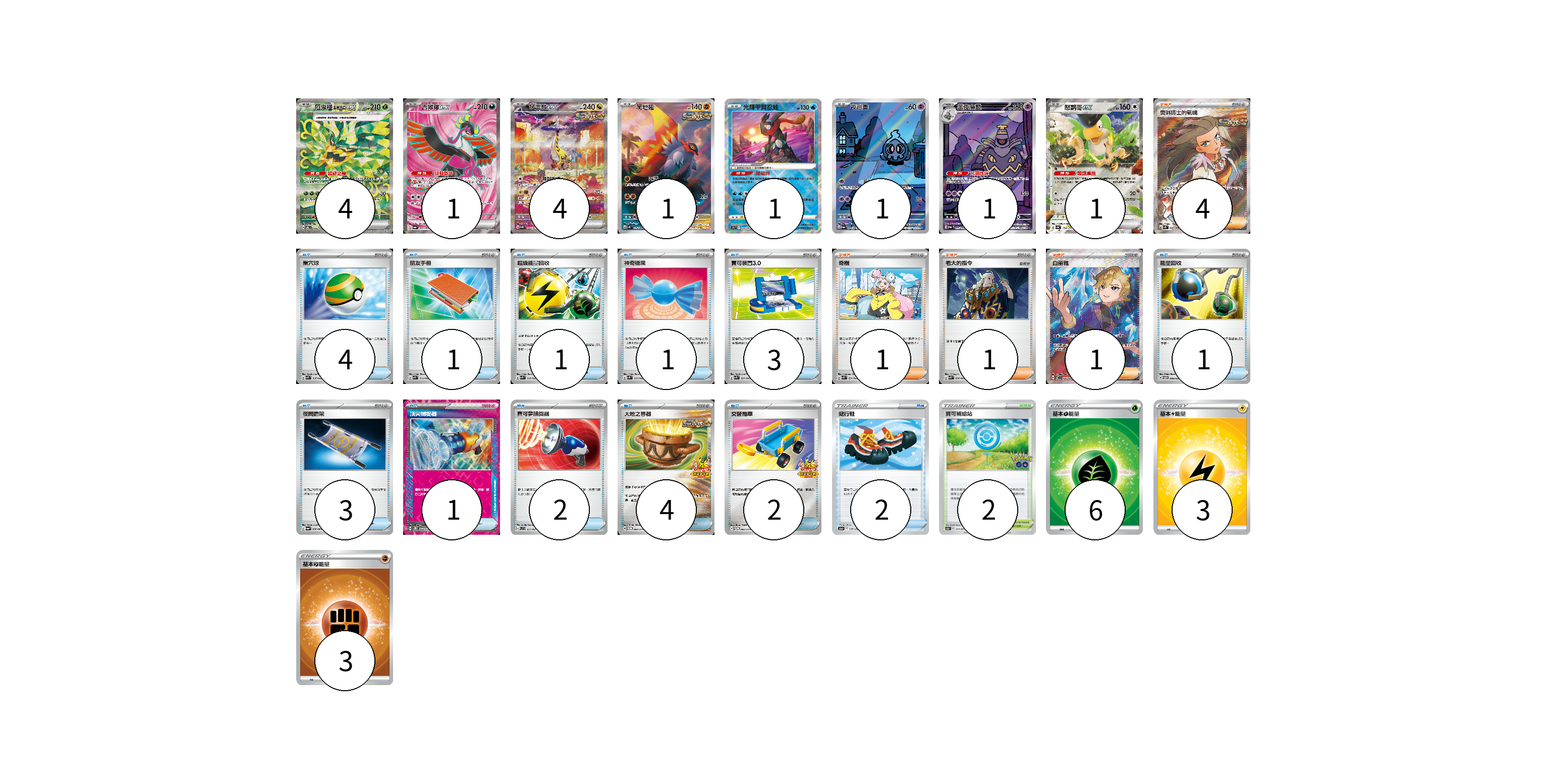 牌組構築方案 以此牌組為基礎新構築牌組 顯示卡面 顯示列表 寶可夢卡(14) 4 1 4 1 1 1 1 1 物品卡(25) 4 1 1 1 3 1 3 1 2 4 2 2 支援者卡(7) 4 1 1 1 競技場卡(2) 2 能量卡(12) 6 3 3 寶可夢卡(14) 卡牌名稱 張數 卡牌名稱 張數 厄鬼椪 碧草面具ex SV6 125/101 04 吉雉雞ex SV6a 081/064 01 猛雷鼓ex SV5K 095/071 04 爬地翅 SV4K 074/066 01 光輝甲賀忍蛙 S9a 026/067 01 夜巡靈 SV6a 068/064 01 黑夜魔靈 SV6a 070/064 01 怒鸚哥ex SV4a 154/190 01 物品卡(25) 卡牌名稱 張數 卡牌名稱 張數 巢穴球 SVK 016/042 04 朋友手冊 SVK 014/042 01 超級能量回收 SVK 010/042 01 神奇糖果 SVK 019/042 01 寶可裝置3.0 SVK 021/042 03 能量回收 SVTM 009/022 01 夜間擔架 SV6a 056/064 03 頂尖捕捉器 SV5M 062/071 01 寶可夢捕捉器 SVC 017/021 02 大地之容器 SV-P 084/SV-P 04 交替推車 SV-P 082/SV-P 02 健行鞋 S12a 137/172 02 支援者卡(7) 卡牌名稱 張數 卡牌名稱 張數 奧琳博士的氣魄 SV4K 085/066 04 奇樹 SVK 031/042 01 老大的指令 SVK 036/042 01 白蕾雅 SV7 126/102 01 競技場卡(2) 卡牌名稱 張數 卡牌名稱 張數 寶可補給站 S10b 071/071 02 能量卡(12) 卡牌名稱 張數 卡牌名稱 張數 基本【草】能量 SI GRA 06 基本【雷】能量 SI LIG 03 基本【鬥】能量 SI FIG 03 以此牌組為基礎新構築牌組 牌組編碼 cdhmir-dkkaVM-gHixoJ copy 列印牌組單 牌組編碼已複製 分享至SNS