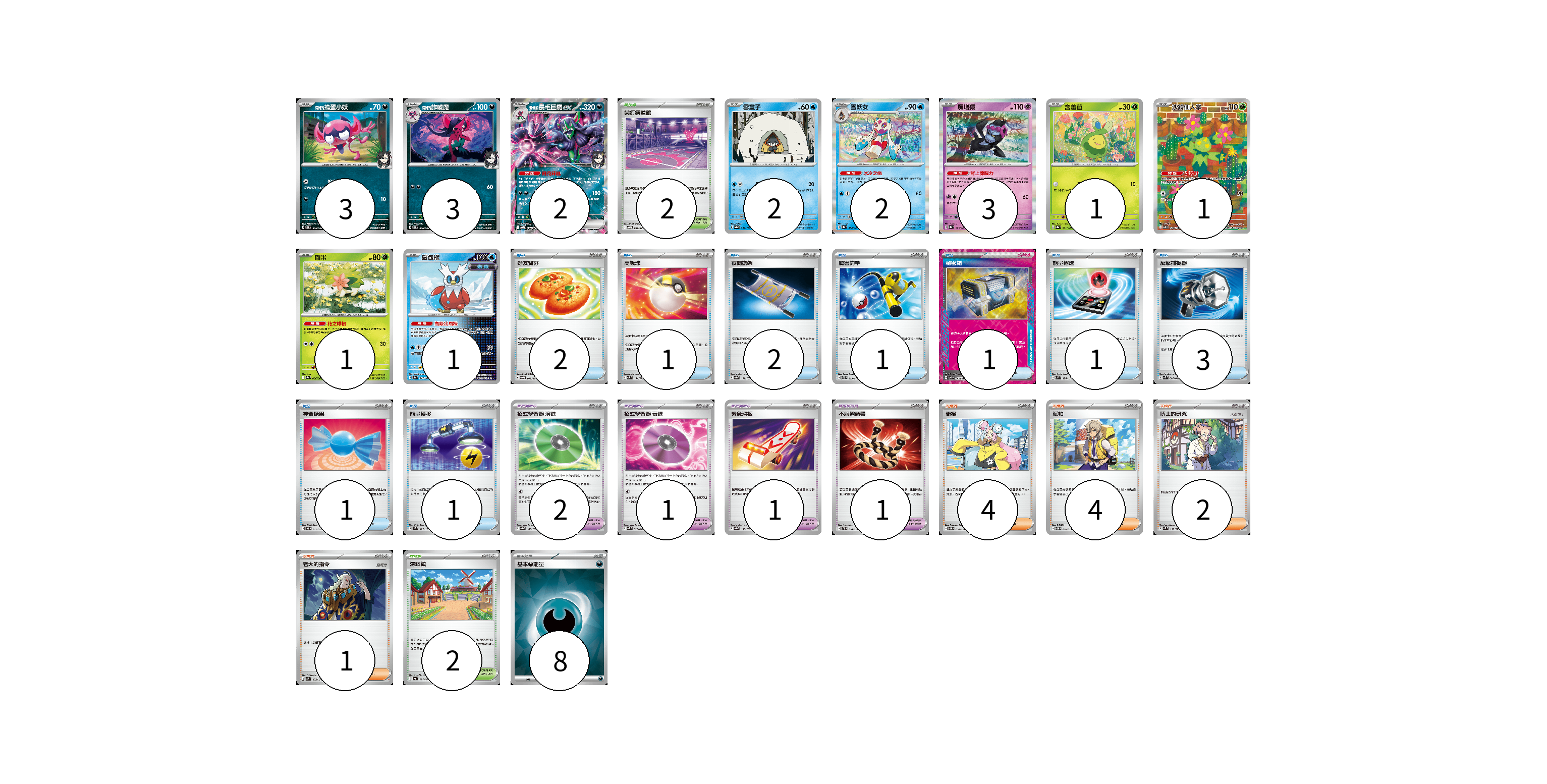 牌組構築方案 以此牌組為基礎新構築牌組 顯示卡面 顯示列表 寶可夢卡(19) 3 3 2 2 2 3 1 1 1 1 寶可夢道具(5) 2 1 1 1 物品卡(13) 2 1 2 1 1 1 3 1 1 支援者卡(11) 4 4 2 1 競技場卡(4) 2 2 能量卡(8) 8 寶可夢卡(19) 卡牌名稱 張數 卡牌名稱 張數 <瑪俐的>搗蛋小妖 SVOM 005/021 03 <瑪俐的>詐唬魔 SVOM 006/021 03 <瑪俐的>長毛巨魔ex SVOM 007/021 02 雪童子 SV8a 037/187 02 雪妖女 SV8a 038/187 02 願增猿 SV8a 075/187 03 含羞苞 SV8a 001/187 01 沙鈴仙人掌 SV9 101/100 01 謝米 SV9a 006/063 01 鐵包袱 SV8a 047/187 01 寶可夢道具(5) 卡牌名稱 張數 卡牌名稱 張數 招式學習器 演進 SV8a 160/187 02 招式學習器 衰退 SVK 026/042 01 緊急滑板 SV8a 153/187 01 不服輸頭帶 SVTL 016/021 01 物品卡(13) 卡牌名稱 張數 卡牌名稱 張數 好友寶芬 SVOM 012/021 02 高級球 SVM 134/175 01 夜間擔架 SV8a 151/187 02 厲害釣竿 SVTG 009/019 01 秘密箱 SV6 092/101 01 能量輸送 SVM 128/175 01 反擊捕捉器 SVK 009/042 03 神奇糖果 SVOD 013/020 01 能量轉移 SVM 127/175 01 支援者卡(11) 卡牌名稱 張數 卡牌名稱 張數 奇樹 SVOM 018/021 04 派帕 SVTM 019/022 04 博士的研究 SVM 169/175 02 老大的指令 SVM 172/175 01 競技場卡(4) 卡牌名稱 張數 卡牌名稱 張數 尖釘鎮道館 SVOM 021/021 02 深缽鎮 SV4a 185/190 02 能量卡(8) 卡牌名稱 張數 卡牌名稱 張數 基本【惡】能量 SVK DAR 08 以此牌組為基礎新構築牌組 牌組編碼 dYRjSF-UZWEhN-bojFbI copy 列印牌組單 牌組編碼已複製 分享至SNS