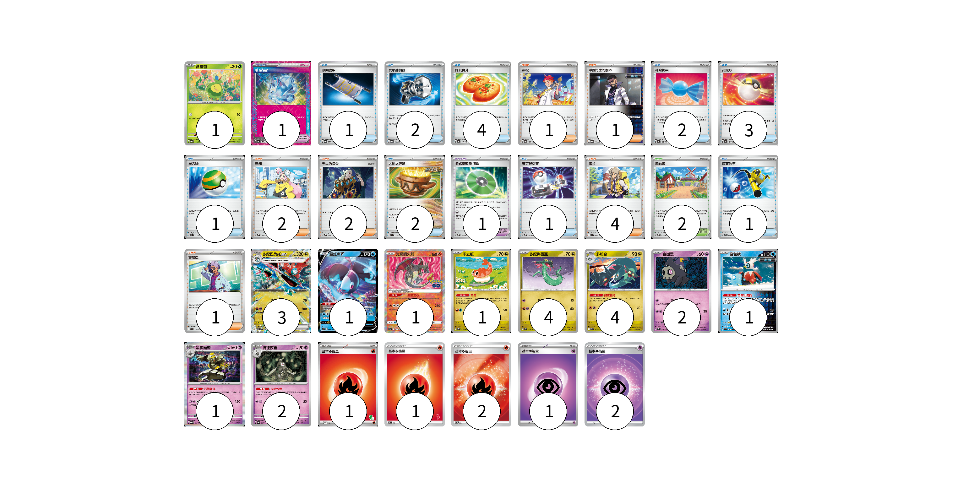 牌組構築方案 以此牌組為基礎新構築牌組 顯示卡面 顯示列表 寶可夢卡(21) 1 3 1 1 1 4 4 2 1 1 2 寶可夢道具(2) 1 1 物品卡(17) 1 2 4 2 3 1 2 1 1 支援者卡(11) 1 1 2 2 4 1 競技場卡(2) 2 能量卡(7) 1 1 2 1 2 寶可夢卡(21) 卡牌名稱 張數 卡牌名稱 張數 含羞苞 SV8a 001/187 01 多龍巴魯托ex SV6 081/101 03 霓虹魚V S9 030/100 01 光輝噴火龍 S10b 011/071 01 米立龍 SVK 002/042 01 多龍梅西亞 SV8a 118/187 04 多龍奇 SV8a 119/187 04 夜巡靈 SV8a 064/187 02 鐵包袱 SV4M 020/066 01 黑夜魔靈 SV6a 020/064 01 彷徨夜靈 SV6a 019/064 02 寶可夢道具(2) 卡牌名稱 張數 卡牌名稱 張數 璀璨結晶 SV8a 152/187 01 招式學習器 演進 SVK 025/042 01 物品卡(17) 卡牌名稱 張數 卡牌名稱 張數 夜間擔架 SV6a 056/064 01 反擊捕捉器 SV8a 139/187 02 好友寶芬 SV8a 147/187 04 神奇糖果 SVM 135/175 02 高級球 SVM 134/175 03 巢穴球 SVM 133/175 01 大地之容器 SVK 012/042 02 寶可夢交替 SVK 022/042 01 厲害釣竿 SVTG 009/019 01 支援者卡(11) 卡牌名稱 張數 卡牌名稱 張數 赤松 SV8a 163/187 01 弗圖博士的劇本 SV8a 175/187 01 奇樹 SVM 160/175 02 老大的指令 SVM 172/175 02 派帕 SVK 035/042 04 吉尼亞 SVD 129/139 01 競技場卡(2) 卡牌名稱 張數 卡牌名稱 張數 深缽鎮 SVK 039/042 02 能量卡(7) 卡牌名稱 張數 卡牌名稱 張數 基本【火】能量 SVI FIR 01 基本火能量 SH FIR 01 基本【火】能量 SO FIR 02 基本【超】能量 SVB PSY 01 基本【超】能量 SI PSY 02 以此牌組為基礎新構築牌組 牌組編碼 eJNSFx-TBCrpD-SSStcs copy 列印牌組單 牌組編碼已複製 分享至SNS