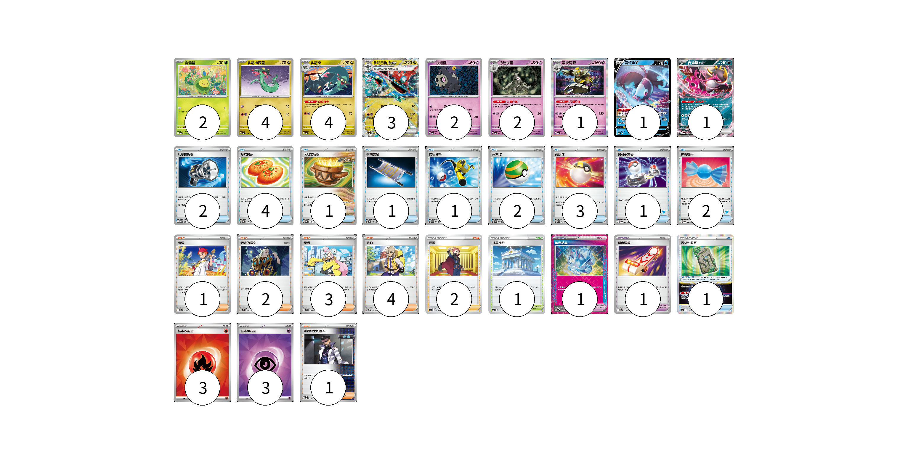 牌組構築方案 以此牌組為基礎新構築牌組 顯示卡面 顯示列表 寶可夢卡(20) 2 4 4 3 2 2 1 1 1 寶可夢道具(3) 1 1 1 物品卡(17) 2 4 1 1 1 2 3 1 2 支援者卡(13) 1 2 3 4 2 1 競技場卡(1) 1 能量卡(6) 3 3 寶可夢卡(20) 卡牌名稱 張數 卡牌名稱 張數 含羞苞 SV8a 001/187 02 多龍梅西亞 SV8a 118/187 04 多龍奇 SV8a 119/187 04 多龍巴魯托ex SV8a 120/187 03 夜巡靈 SV8a 064/187 02 彷徨夜靈 SV8a 065/187 02 黑夜魔靈 SV8a 066/187 01 霓虹魚V SVB 008/028 01 吉雉雞ex SV6a 038/064 01 寶可夢道具(3) 卡牌名稱 張數 卡牌名稱 張數 璀璨結晶 SV8a 152/187 01 緊急滑板 SV8a 153/187 01 森林封印石 S12 092/098 01 物品卡(17) 卡牌名稱 張數 卡牌名稱 張數 反擊捕捉器 SV8a 139/187 02 好友寶芬 SV8a 147/187 04 大地之容器 SV8a 143/187 01 夜間擔架 SV8a 151/187 01 厲害釣竿 SVK 011/042 01 巢穴球 SVK 016/042 02 高級球 SVK 018/042 03 寶可夢交替 SVI 054/066 01 神奇糖果 SVI 053/066 02 支援者卡(13) 卡牌名稱 張數 卡牌名稱 張數 赤松 SV8a 163/187 01 老大的指令 SVM 172/175 02 奇樹 SVK 031/042 03 派帕 SVK 035/042 04 阿渡 S12 096/098 02 弗圖博士的劇本 SV8a 175/187 01 競技場卡(1) 卡牌名稱 張數 卡牌名稱 張數 神奧神殿 S12a 169/172 01 能量卡(6) 卡牌名稱 張數 卡牌名稱 張數 基本【火】能量 SVK FIR 03 基本【超】能量 SVK PSY 03 以此牌組為基礎新構築牌組 牌組編碼 eXTEyh-keBhXm-ALnFpR copy 列印牌組單 牌組編碼已複製 分享至SNS