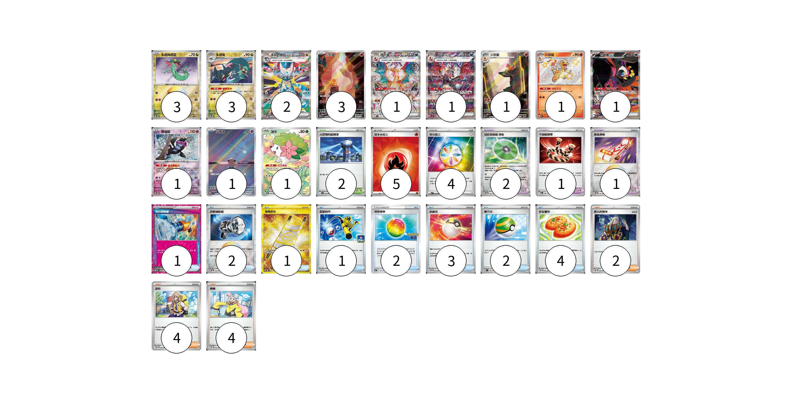牌組構築方案 以此牌組為基礎新構築牌組 顯示卡面 顯示列表 寶可夢卡(19) 3 3 2 3 1 1 1 1 1 1 1 1 寶可夢道具(4) 2 1 1 物品卡(16) 1 2 1 1 2 3 2 4 支援者卡(10) 2 4 4 競技場卡(2) 2 能量卡(9) 5 4 寶可夢卡(19) 卡牌名稱 張數 卡牌名稱 張數 多龍梅西亞 SV8a 118/187 03 多龍奇 SV8a 119/187 03 多龍巴魯托ex SV8a 221/187 02 小火龍 SV2a 168/165 03 噴火龍ex SV3 134/108 01 噴火龍ex SV4a 349/190 01 火恐龍 SV2a 169/165 01 火恐龍 SV4a 211/190 01 吉雉雞ex SV6a 089/064 01 願增猿 SV8a 075/187 01 皮寶寶 SV3 113/108 01 謝米 SV9a 066/063 01 寶可夢道具(4) 卡牌名稱 張數 卡牌名稱 張數 招式學習器 演進 SV8a 160/187 02 不服輸頭帶 SV4a 168/190 01 緊急滑板 SV8a 153/187 01 物品卡(16) 卡牌名稱 張數 卡牌名稱 張數 頂尖捕捉器 SV8a 148/187 01 反擊捕捉器 SV8a 139/187 02 夜間擔架 SV8 137/106 01 厲害釣竿 SV-P 112/SV-P 01 神奇糖果 S10b 066/071 02 高級球 SVOD 012/020 03 巢穴球 SVM 133/175 02 好友寶芬 SVOD 011/020 04 支援者卡(10) 卡牌名稱 張數 卡牌名稱 張數 老大的指令 SVOD 019/020 02 派帕 SVOD 018/020 04 奇樹 SVOD 016/020 04 競技場卡(2) 卡牌名稱 張數 卡牌名稱 張數 火箭隊的監視塔 SV10 096/098 02 能量卡(9) 卡牌名稱 張數 卡牌名稱 張數 基本【火】能量 SVK FIR 05 夜光能量 SVK 042/042 04 以此牌組為基礎新構築牌組 牌組編碼 gpGLGW-FpcUXw-jOqHZU copy 列印牌組單 牌組編碼已複製 分享至SNS