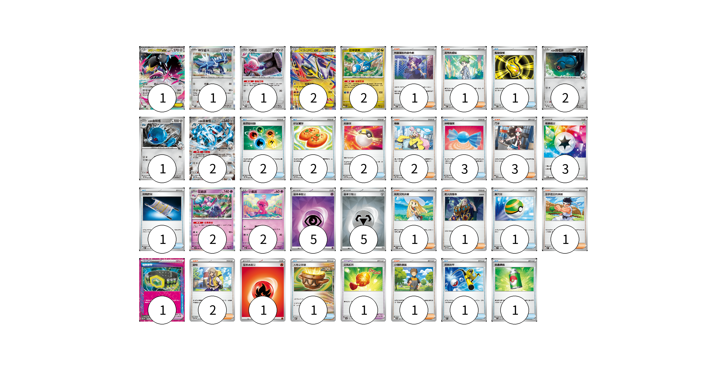 牌組構築方案 以此牌組為基礎新構築牌組 顯示卡面 顯示列表 寶可夢卡(16) 1 1 1 2 2 2 1 2 2 2 寶可夢道具(2) 1 1 物品卡(15) 1 2 2 2 3 1 1 1 1 1 支援者卡(13) 1 1 2 3 1 1 1 2 1 能量卡(14) 3 5 5 1 寶可夢卡(16) 卡牌名稱 張數 卡牌名稱 張數 超級大嘴娃ex M1L 046/063 01 帝牙盧卡 M1L 047/063 01 巧鍛匠 M1L 049/063 01 超級拉帝亞斯ex M1S 049/063 02 拉帝歐斯 M1S 050/063 02 <大吾的>鐵啞鈴 SVOD 006/020 02 <大吾的>金屬怪 SVOD 007/020 01 <大吾的>巨金怪ex SVOD 008/020 02 巨鍛匠 SV4a 096/190 02 小鍛匠 SV4a 094/190 02 寶可夢道具(2) 卡牌名稱 張數 卡牌名稱 張數 極限腰帶 SV8a 159/187 01 勇氣護符 SV4a 169/190 01 物品卡(15) 卡牌名稱 張數 卡牌名稱 張數 超級信號 M1S 058/063 01 能量回收器 SVOD 009/020 02 好友寶芬 SVOD 011/020 02 高級球 SVOD 012/020 02 神奇糖果 SVOD 013/020 03 夜間擔架 SV8a 151/187 01 巢穴球 SVM 133/175 01 大地之容器 SV8a 143/187 01 厲害釣竿 SVK 011/042 01 除蟲噴霧 M1L 060/063 01 支援者卡(13) 卡牌名稱 張數 卡牌名稱 張數 阿塞蘿拉的惡作劇 M1S 059/063 01 滿充的體貼 M1S 060/063 01 奇樹 SVOD 016/020 02 鬥子 SV11W 085/086 03 莉莉艾的決意 M1L 062/063 01 老大的指令 SVOD 019/020 01 空手道王的演練 SVM 144/175 01 派帕 SVOD 018/020 02 小剛的發掘 SV9 096/100 01 能量卡(14) 卡牌名稱 張數 卡牌名稱 張數 稜鏡能量 SV11B 086/086 03 基本【超】能量 SVOD PSY 05 基本【鋼】能量 SVOD MET 05 基本【火】能量 SVTL FIR 01 以此牌組為基礎新構築牌組 牌組編碼 hCabaU-ayZdpn-EcYaMF copy 列印牌組單 牌組編碼已複製 分享至SNS