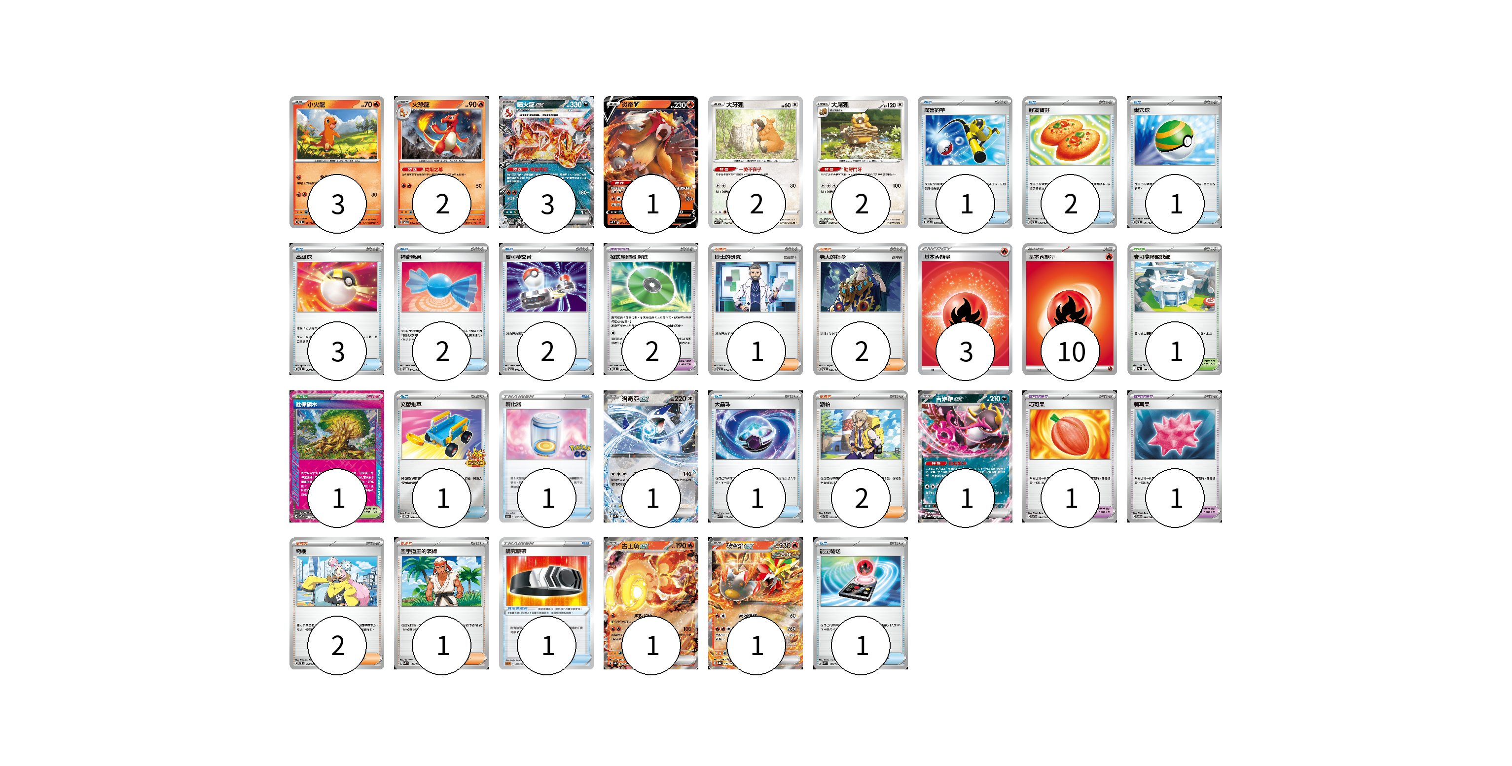 牌組構築方案 以此牌組為基礎新構築牌組 顯示卡面 顯示列表 寶可夢卡(17) 3 2 3 1 2 2 1 1 1 1 寶可夢道具(7) 2 1 1 2 1 物品卡(15) 1 2 1 3 2 2 1 1 1 1 支援者卡(6) 1 2 2 1 競技場卡(2) 1 1 能量卡(13) 3 10 寶可夢卡(17) 卡牌名稱 張數 卡牌名稱 張數 小火龍 SVTL 001/021 03 火恐龍 SVTL 002/021 02 噴火龍ex SVTL 006/021 03 炎帝V SVTL 005/021 01 大牙狸 SVTL 007/021 02 大尾狸 SVTL 008/021 02 洛奇亞ex SVM 097/175 01 吉雉雞ex SV8a 104/187 01 古玉魚ex SV4a 035/190 01 破空焰ex SV8a 027/187 01 寶可夢道具(7) 卡牌名稱 張數 卡牌名稱 張數 招式學習器 演進 SVTL 017/021 02 巧可果 SV7 093/102 01 刺耳果 SV8 099/106 01 奇樹 SVTL 018/021 02 講究腰帶 SLL 015/021 01 物品卡(15) 卡牌名稱 張數 卡牌名稱 張數 厲害釣竿 SVTL 009/021 01 好友寶芬 SVTL 010/021 02 巢穴球 SVTL 011/021 01 高級球 SVTL 012/021 03 神奇糖果 SVTM 013/022 02 寶可夢交替 SVTL 015/021 02 交替推車 SV-P 082/SV-P 01 孵化器 S10b 065/071 01 太晶珠 SVK 013/042 01 能量輸送 SVM 128/175 01 支援者卡(6) 卡牌名稱 張數 卡牌名稱 張數 博士的研究 SVTL 019/021 01 老大的指令 SVTL 021/021 02 派帕 SVTL 020/021 02 空手道王的演練 SVM 149/175 01 競技場卡(2) 卡牌名稱 張數 卡牌名稱 張數 寶可夢聯盟總部 SV4a 186/190 01 壯偉碩木 SV7 101/102 01 能量卡(13) 卡牌名稱 張數 卡牌名稱 張數 基本【炎】能量 SI FIR 03 基本【火】能量 SVTL FIR 10 以此牌組為基礎新構築牌組 牌組編碼 hEmaYD-pLDPtI-BysOam copy 列印牌組單 牌組編碼已複製 分享至SNS