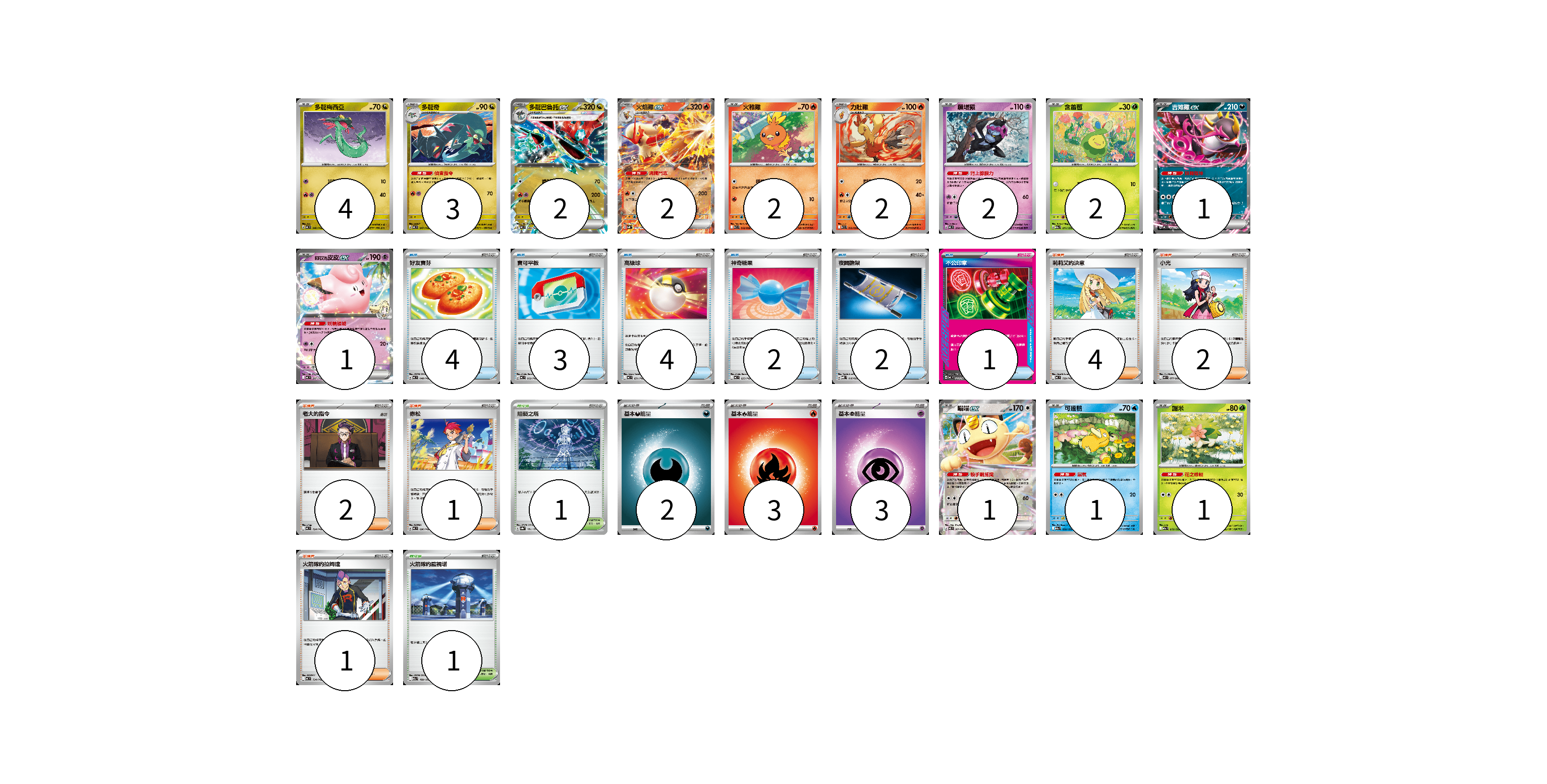 牌組構築方案 以此牌組為基礎新構築牌組 顯示卡面 顯示列表 寶可夢卡(24) 4 3 2 2 2 2 2 2 1 1 1 1 1 物品卡(16) 4 3 4 2 2 1 支援者卡(10) 4 2 2 1 1 競技場卡(2) 1 1 能量卡(8) 2 3 3 寶可夢卡(24) 卡牌名稱 張數 卡牌名稱 張數 多龍梅西亞 MC 546/742 04 多龍奇 MC 547/742 03 多龍巴魯托ex MC 548/742 02 火焰雞ex SVM 016/175 02 火稚雞 SV10 018/098 02 力壯雞 SV10 019/098 02 願增猿 MC 358/742 02 含羞苞 M2a 011/193 02 吉雉雞ex MC 489/742 01 莉莉艾的皮皮ex MC 287/742 01 喵喵ex M3 061/080 01 可達鴨 M2a 032/193 01 謝米 M2a 012/193 01 物品卡(16) 卡牌名稱 張數 卡牌名稱 張數 好友寶芬 MC 648/742 04 寶可平板 MC 662/742 03 高級球 MC 651/742 04 神奇糖果 MC 655/742 02 夜間擔架 MBD 016/022 02 不公印章 MC 633/742 01 支援者卡(10) 卡牌名稱 張數 卡牌名稱 張數 莉莉艾的決意 MC 729/742 04 小光 M2 077/080 02 老大的指令 MC 724/742 02 赤松 MC 696/742 01 火箭隊的拉姆達 MC 734/742 01 競技場卡(2) 卡牌名稱 張數 卡牌名稱 張數 阻礙之塔 SV8a 181/187 01 火箭隊的監視塔 M2a 189/193 01 能量卡(8) 卡牌名稱 張數 卡牌名稱 張數 基本【惡】能量 MC DAR 02 基本【火】能量 MC FIR 03 基本【超】能量 MC PSY 03 以此牌組為基礎新構築牌組 牌組編碼 hKAopH-xBeAle-OTZasD copy 列印牌組單 牌組編碼已複製 分享至SNS