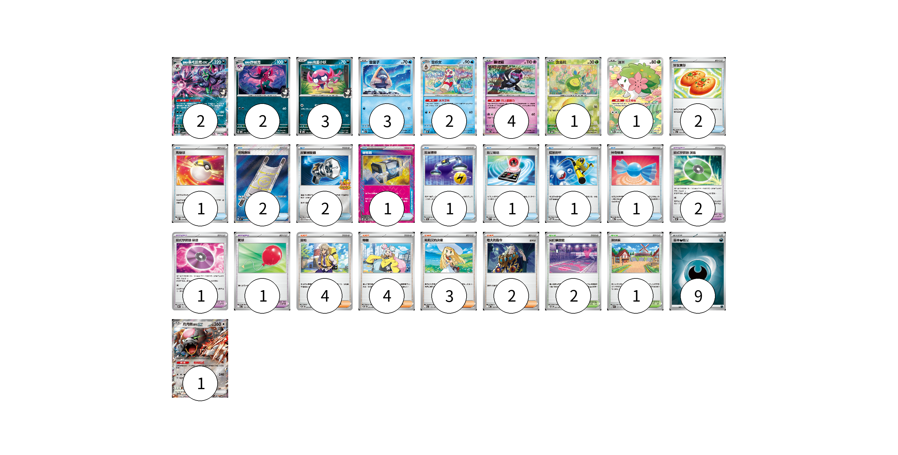 牌組構築方案 以此牌組為基礎新構築牌組 顯示卡面 顯示列表 寶可夢卡(19) 2 2 3 3 2 4 1 1 1 寶可夢道具(4) 2 1 1 物品卡(12) 2 1 2 2 1 1 1 1 1 支援者卡(13) 4 4 3 2 競技場卡(3) 2 1 能量卡(9) 9 寶可夢卡(19) 卡牌名稱 張數 卡牌名稱 張數 <瑪俐的>長毛巨魔ex SVOM 007/021 02 <瑪俐的>詐唬魔 SVOM 006/021 02 <瑪俐的>搗蛋小妖 SVOM 005/021 03 雪童子 M2a 035/193 03 雪妖女 SV8a 038/187 02 願增猿 M2a 081/193 04 含羞苞 SV8a 001/187 01 謝米 SV9a 066/063 01 月月熊 赫月 ex SV5a 052/066 01 寶可夢道具(4) 卡牌名稱 張數 卡牌名稱 張數 招式學習器 演進 SV8a 160/187 02 招式學習器 衰退 SV8a 161/187 01 氣球 M2a 165/193 01 物品卡(12) 卡牌名稱 張數 卡牌名稱 張數 好友寶芬 M2a 153/193 02 高級球 MBD 014/022 01 夜間擔架 M1L 083/063 02 反擊捕捉器 SV-P 083/SV-P 02 秘密箱 SV6 092/101 01 能量轉移 SVAM 012/023 01 能量輸送 SVM 128/175 01 厲害釣竿 SVOD 010/020 01 神奇糖果 MBG 013/022 01 支援者卡(13) 卡牌名稱 張數 卡牌名稱 張數 派帕 SVOD 018/020 04 奇樹 SVOD 016/020 04 莉莉艾的決意 M2a 175/193 03 老大的指令 MBD 020/022 02 競技場卡(3) 卡牌名稱 張數 卡牌名稱 張數 尖釘鎮道館 SVOM 021/021 02 深缽鎮 SVK 039/042 01 能量卡(9) 卡牌名稱 張數 卡牌名稱 張數 基本【惡】能量 SVM DAR 09 以此牌組為基礎新構築牌組 牌組編碼 hggfYs-mhOpac-omxwWH copy 列印牌組單 牌組編碼已複製 分享至SNS