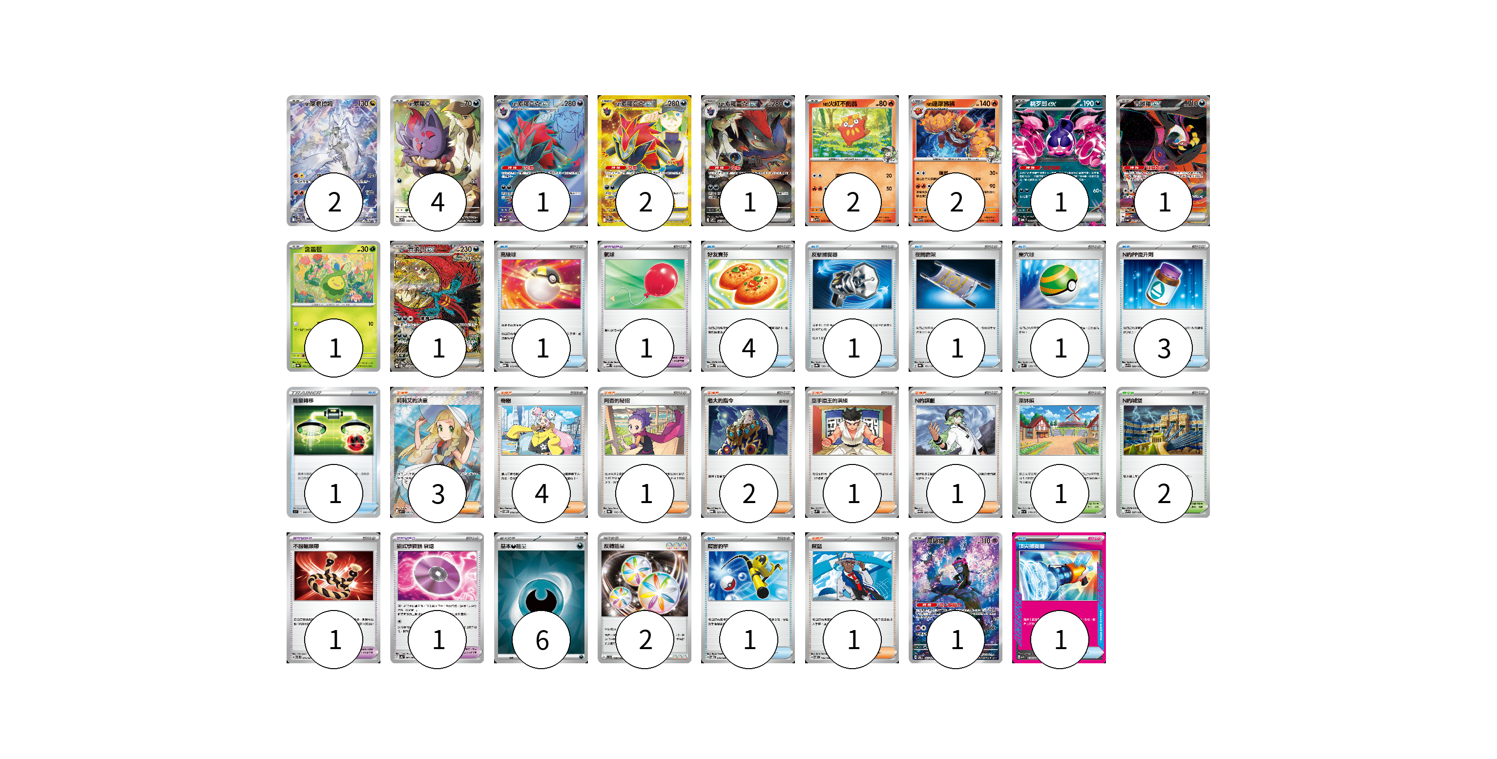 牌組構築方案 以此牌組為基礎新構築牌組 顯示卡面 顯示列表 寶可夢卡(19) 2 4 1 2 1 2 2 1 1 1 1 1 寶可夢道具(2) 1 1 物品卡(15) 1 1 4 1 1 1 3 1 1 1 支援者卡(13) 3 4 1 2 1 1 1 競技場卡(3) 1 2 能量卡(8) 6 2 寶可夢卡(19) 卡牌名稱 張數 卡牌名稱 張數 N的萊希拉姆 SV9 109/100 02 N的索羅亞 SV9 108/100 04 N的索羅亞克ex SV9 117/100 01 N的索羅亞克ex SV9 131/100 02 N的索羅亞克ex SV9 127/100 01 N的火紅不倒翁 SV9 015/100 02 N的達摩狒狒 SV9 016/100 02 桃歹郎ex MBG 009/022 01 吉雉雞ex SV6a 089/064 01 含羞苞 SV8a 001/187 01 轟鳴月ex SV8a 218/187 01 願增猿 SV6 107/101 01 寶可夢道具(2) 卡牌名稱 張數 卡牌名稱 張數 不服輸頭帶 SVTL 016/021 01 招式學習器 衰退 SV4K 063/066 01 物品卡(15) 卡牌名稱 張數 卡牌名稱 張數 高級球 MBG 012/022 01 氣球 MBD 018/022 01 好友寶芬 MBD 013/022 04 反擊捕捉器 SV8a 139/187 01 夜間擔架 SV8a 151/187 01 巢穴球 SVM 133/175 01 N的PP提升劑 SV9 089/100 03 能量轉移 SI 366/414 01 厲害釣竿 SVOD 010/020 01 頂尖捕捉器 MBG 014/022 01 支援者卡(13) 卡牌名稱 張數 卡牌名稱 張數 莉莉艾的決意 M1L 086/063 03 奇樹 SVOM 018/021 04 阿杏的秘招 SV8a 166/187 01 老大的指令 MBG 021/022 02 空手道王的演練 SVM 143/175 01 N的謀劃 SV11B 083/086 01 席藍 SV8 102/106 01 競技場卡(3) 卡牌名稱 張數 卡牌名稱 張數 深缽鎮 SV1a 070/073 01 N的城堡 SV9 097/100 02 能量卡(8) 卡牌名稱 張數 卡牌名稱 張數 基本【惡】能量 SVOM DAR 06 反轉能量 SVD 139/139 02 以此牌組為基礎新構築牌組 牌組編碼 jFCDnJ-EQzpSK-IeUDkz copy 列印牌組單 牌組編碼已複製 分享至SNS