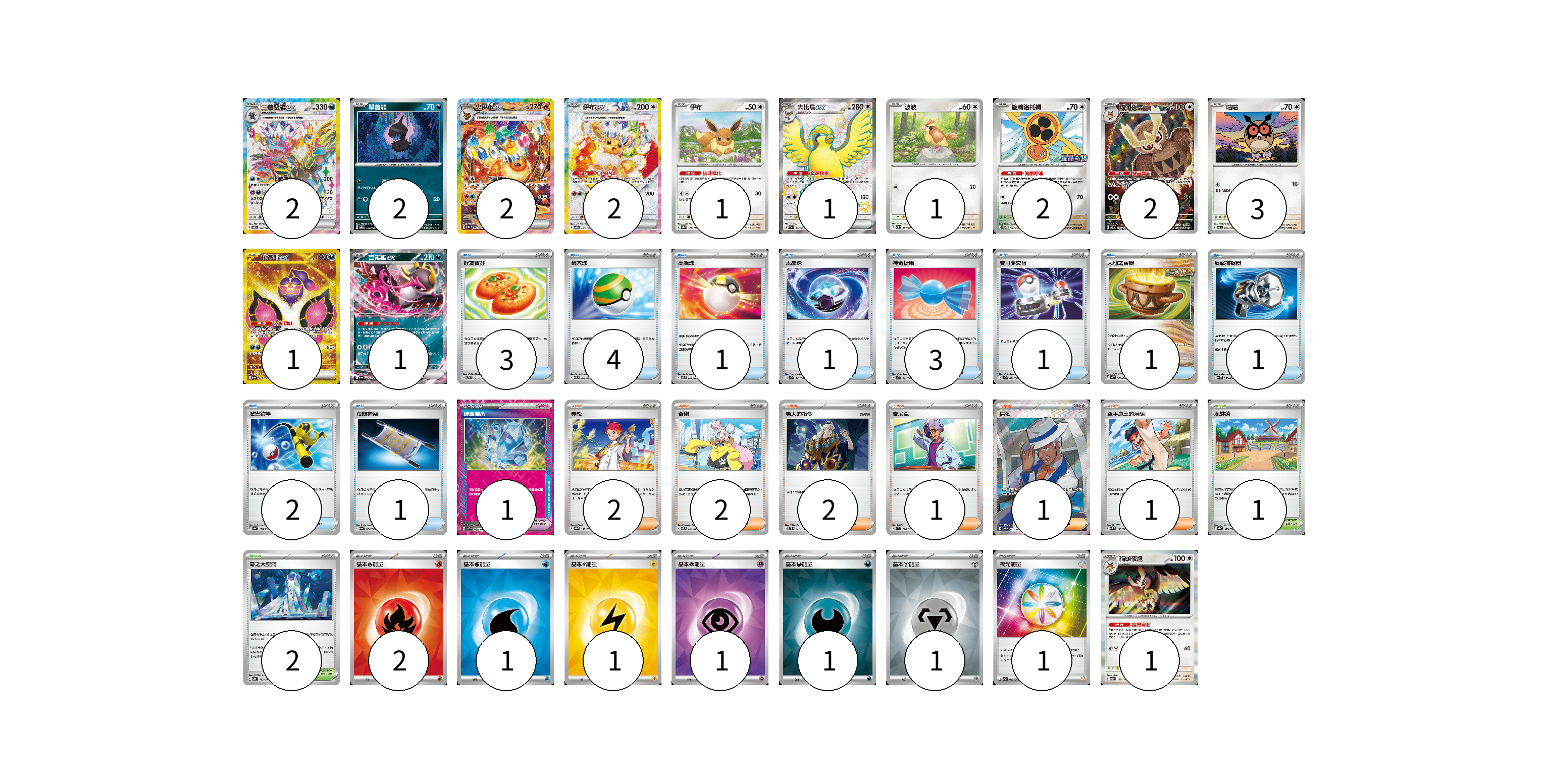 牌組構築方案 以此牌組為基礎新構築牌組 顯示卡面 顯示列表 寶可夢卡(21) 2 2 2 2 1 1 1 2 2 3 1 1 1 寶可夢道具(3) 1 2 物品卡(18) 3 4 1 1 3 1 1 1 2 1 支援者卡(7) 2 2 1 1 1 競技場卡(3) 1 2 能量卡(8) 2 1 1 1 1 1 1 寶可夢卡(21) 卡牌名稱 張數 卡牌名稱 張數 三首惡龍ex SV8 124/106 02 單首龍 SV8 070/106 02 火伊布ex SV8a 202/187 02 伊布ex SV8a 224/187 02 伊布 SV8a 125/187 01 大比鳥ex SV4a 335/190 01 波波 SV3 087/108 01 旋轉洛托姆 SV-P 146/SV-P 02 貓頭夜鷹 SV7 114/102 02 咕咕 SV7 076/102 03 桃歹郎ex SV6a 092/064 01 吉雉雞ex SV6a 038/064 01 貓頭夜鷹 SV8a 128/187 01 寶可夢道具(3) 卡牌名稱 張數 卡牌名稱 張數 璀璨結晶 SV7 094/102 01 奇樹 SVTL 018/021 02 物品卡(18) 卡牌名稱 張數 卡牌名稱 張數 好友寶芬 SVTS 012/022 03 巢穴球 SVTL 011/021 04 高級球 SVTL 012/021 01 太晶珠 SVK 013/042 01 神奇糖果 SVK 019/042 03 寶可夢交替 SVK 022/042 01 大地之容器 SV4K 060/066 01 反擊捕捉器 SV4M 059/066 01 厲害釣竿 SV4a 158/190 02 夜間擔架 SV6a 056/064 01 支援者卡(7) 卡牌名稱 張數 卡牌名稱 張數 赤松 SV8a 163/187 02 老大的指令 SVTL 021/021 02 吉尼亞 SV1S 074/078 01 席藍 SV8 127/106 01 空手道王的演練 SVM 145/175 01 競技場卡(3) 卡牌名稱 張數 卡牌名稱 張數 深缽鎮 SV4a 185/190 01 零之大空洞 SV8a 182/187 02 能量卡(8) 卡牌名稱 張數 卡牌名稱 張數 基本【火】能量 SVK FIR 02 基本【水】能量 SVK WAT 01 基本【雷】能量 SVK LIG 01 基本【超】能量 SVK PSY 01 基本【惡】能量 SVK DAR 01 基本【鋼】能量 SVK MET 01 夜光能量 SVK 042/042 01 以此牌組為基礎新構築牌組 牌組編碼 ksLPnX-YxwdfP-RuJlvZ copy 列印牌組單 牌組編碼已複製 分享至SNS