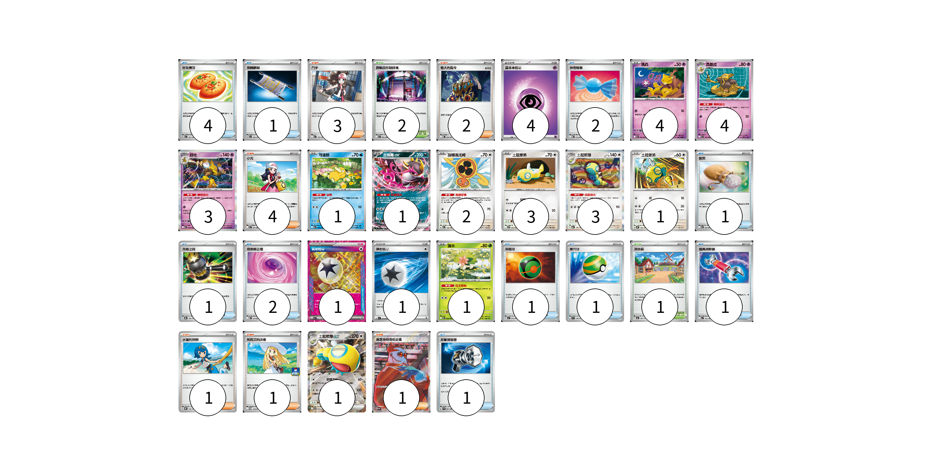 牌組構築方案 以此牌組為基礎新構築牌組 顯示卡面 顯示列表 寶可夢卡(24) 4 4 3 1 1 2 3 3 1 1 1 物品卡(15) 4 1 2 1 1 2 1 1 1 1 支援者卡(12) 3 2 4 1 1 1 競技場卡(3) 2 1 能量卡(6) 4 1 1 寶可夢卡(24) 卡牌名稱 張數 卡牌名稱 張數 凱西 M1S 036/063 04 勇基拉 M1S 037/063 04 胡地 M1S 038/063 03 可達鴨 M2a 032/193 01 吉雉雞ex M2a 114/193 01 旋轉洛托姆 M2a 139/193 02 土龍弟弟 SV9 078/100 03 土龍節節 SV8a 130/187 03 土龍弟弟 SV8a 129/187 01 謝米 SV9a 006/063 01 土龍節節ex SV9 079/100 01 物品卡(15) 卡牌名稱 張數 卡牌名稱 張數 好友寶芬 M2a 153/193 04 夜間擔架 M2a 159/193 01 神奇糖果 MBG 013/022 02 聖灰 SV9a 056/063 01 改造之錘 SV8a 138/187 01 奇跡修正檔 MBD 017/022 02 黑暗球 SV7a 054/064 01 巢穴球 SV1S 070/078 01 道具拆除器 M2a 151/193 01 反擊捕捉器 SV4M 059/066 01 支援者卡(12) 卡牌名稱 張數 卡牌名稱 張數 鬥子 M2a 172/193 03 老大的指令 MBD 020/022 02 小光 M2 077/080 04 水蓮的照顧 SV8a 168/187 01 莉莉艾的決意 M-P 018/M-P 01 庫瑟洛斯奇的企圖 SV6a 086/064 01 競技場卡(3) 卡牌名稱 張數 卡牌名稱 張數 對戰圓形競技場 M2 079/080 02 深缽鎮 SV4a 185/190 01 能量卡(6) 卡牌名稱 張數 卡牌名稱 張數 基本【超】能量 MBD PSY 04 富裕能量 SV7a 064/064 01 噴射能量 SV1a 072/073 01 以此牌組為基礎新構築牌組 牌組編碼 kxQCQq-vwZLMa-NSyRNd copy 列印牌組單 牌組編碼已複製 分享至SNS