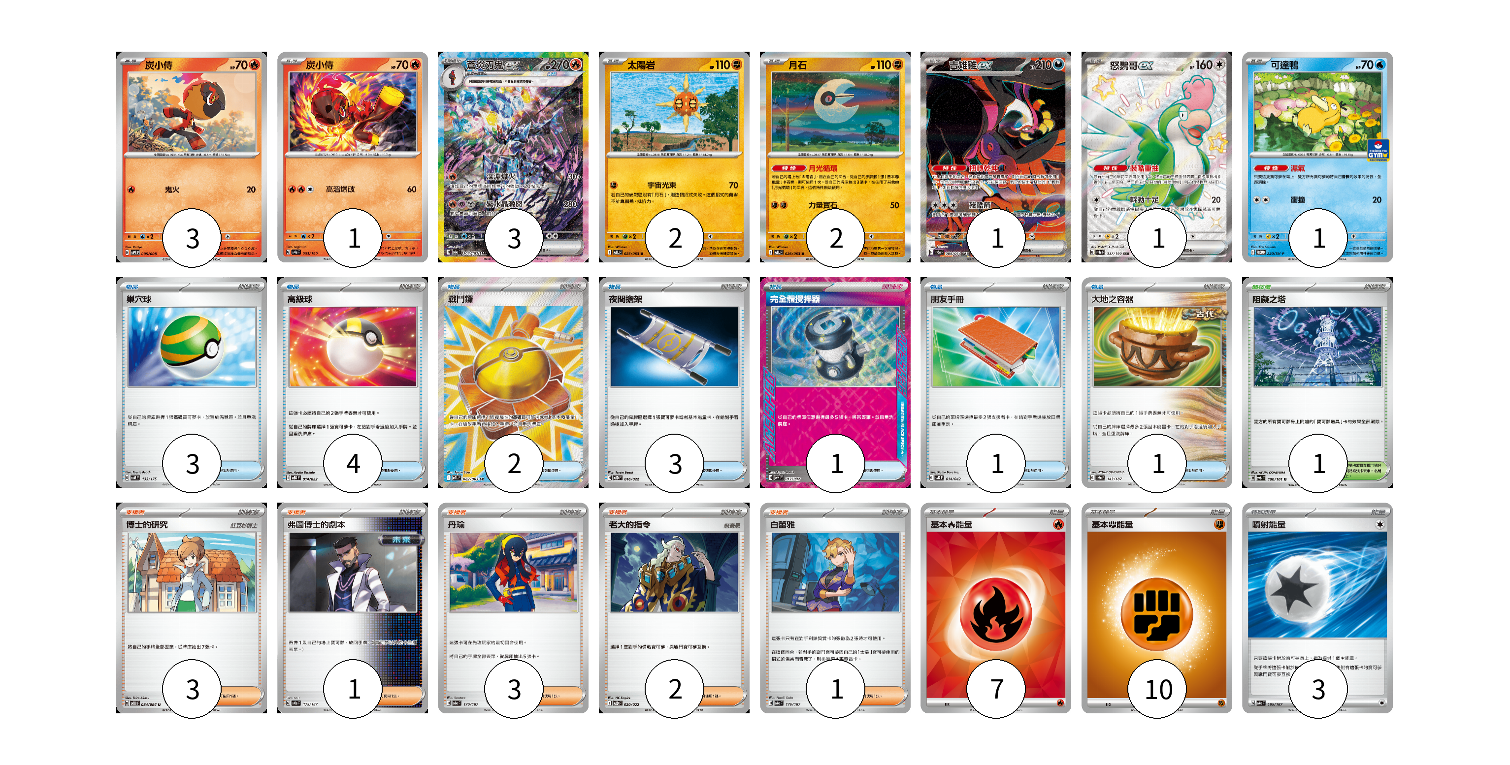 牌組構築方案 以此牌組為基礎新構築牌組 顯示卡面 顯示列表 寶可夢卡(14) 3 1 3 2 2 1 1 1 物品卡(15) 3 4 2 3 1 1 1 支援者卡(10) 3 1 3 2 1 競技場卡(1) 1 能量卡(20) 7 10 3 寶可夢卡(14) 卡牌名稱 張數 卡牌名稱 張數 炭小侍 SVPS 005/008 03 炭小侍 SV4a 033/190 01 蒼炎刃鬼ex SV8a 203/187 03 太陽岩 M1L 027/063 02 月石 M1L 026/063 02 吉雉雞ex SV6a 089/064 01 怒鸚哥ex SV4a 337/190 01 可達鴨 SV-P 220/SV-P 01 物品卡(15) 卡牌名稱 張數 卡牌名稱 張數 巢穴球 SVM 133/175 03 高級球 MBD 014/022 04 戰鬥鑼 M1L 082/063 02 夜間擔架 MBD 016/022 03 完全體攪拌器 SVK 017/042 01 朋友手冊 SVK 014/042 01 大地之容器 SV8a 143/187 01 支援者卡(10) 卡牌名稱 張數 卡牌名稱 張數 博士的研究 SV11B 084/086 03 弗圖博士的劇本 SV8a 175/187 01 丹瑜 SV8a 170/187 03 老大的指令 MBD 020/022 02 白蕾雅 SV8a 176/187 01 競技場卡(1) 卡牌名稱 張數 卡牌名稱 張數 阻礙之塔 SV6 100/101 01 能量卡(20) 卡牌名稱 張數 卡牌名稱 張數 基本【火】能量 SVQL FIR 07 基本【鬥】能量 M-P FIG 10 噴射能量 SV8a 185/187 03 以此牌組為基礎新構築牌組 牌組編碼 lxloaT-DjiZkx-hipRVg copy 列印牌組單 牌組編碼已複製 分享至SNS
