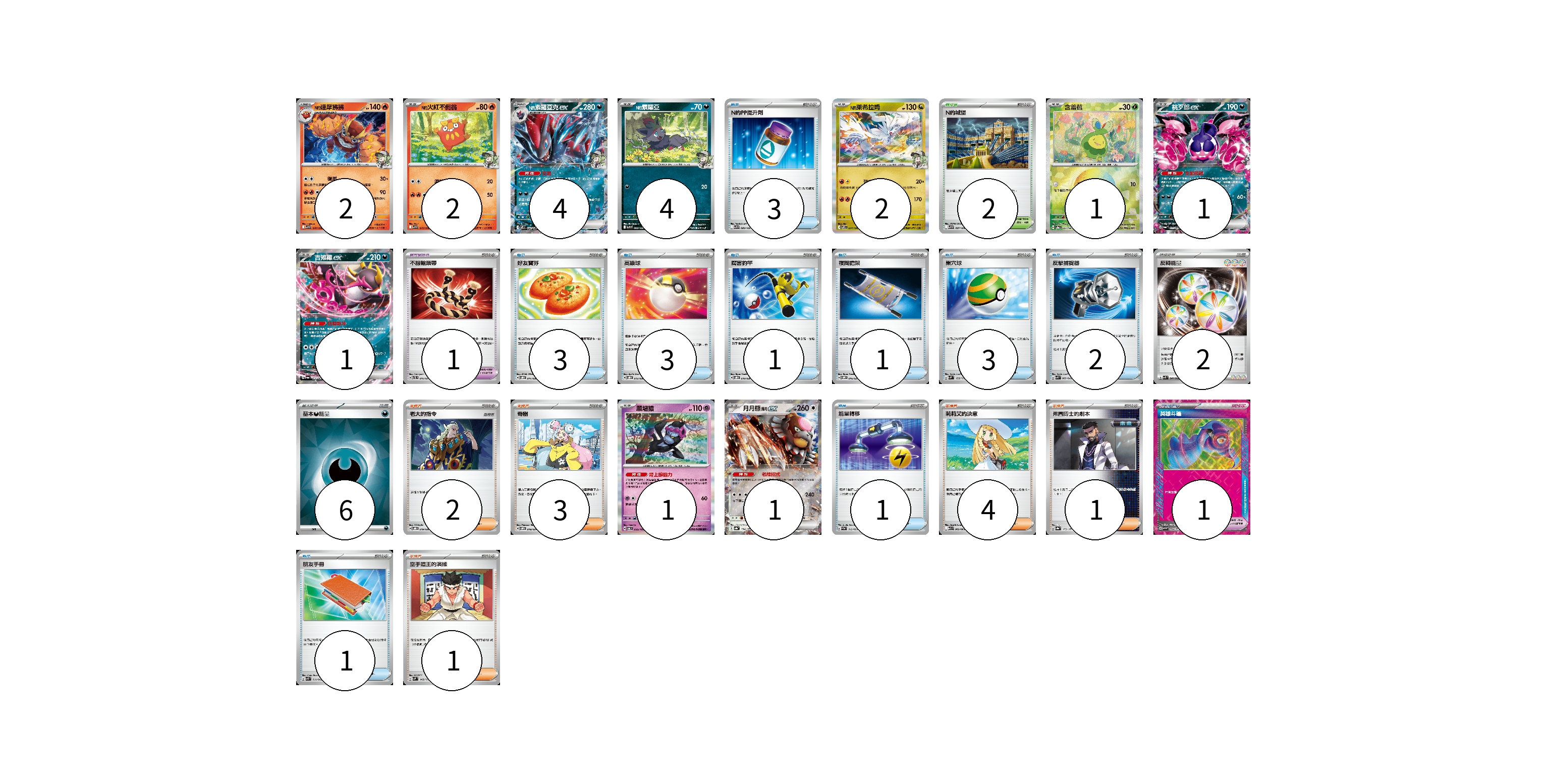 牌組構築方案 以此牌組為基礎新構築牌組 顯示卡面 顯示列表 寶可夢卡(19) 2 2 4 4 2 1 1 1 1 1 寶可夢道具(2) 1 1 物品卡(18) 3 3 3 1 1 3 2 1 1 支援者卡(11) 2 3 4 1 1 競技場卡(2) 2 能量卡(8) 2 6 寶可夢卡(19) 卡牌名稱 張數 卡牌名稱 張數 N的達摩狒狒 SV9 016/100 02 N的火紅不倒翁 SV9 015/100 02 N的索羅亞克ex SV9 061/100 04 N的索羅亞 SV9 060/100 04 N的萊希拉姆 SV9 074/100 02 含羞苞 SV8a 001/187 01 桃歹郎ex SV6a 039/064 01 吉雉雞ex SV6a 038/064 01 願增猿 SV6 055/101 01 月月熊 赫月ex SV8a 134/187 01 寶可夢道具(2) 卡牌名稱 張數 卡牌名稱 張數 不服輸頭帶 SVTL 016/021 01 英雄斗篷 SV5M 064/071 01 物品卡(18) 卡牌名稱 張數 卡牌名稱 張數 N的PP提升劑 SV9 089/100 03 好友寶芬 SVOD 011/020 03 高級球 SVOD 012/020 03 厲害釣竿 SVOD 010/020 01 夜間擔架 SVOM 016/021 01 巢穴球 SVM 133/175 03 反擊捕捉器 SVK 009/042 02 能量轉移 SVAM 012/023 01 朋友手冊 SVK 014/042 01 支援者卡(11) 卡牌名稱 張數 卡牌名稱 張數 老大的指令 SVOD 019/020 02 奇樹 SVOM 018/021 03 莉莉艾的決意 M1L 062/063 04 弗圖博士的劇本 SV8a 175/187 01 空手道王的演練 SVM 143/175 01 競技場卡(2) 卡牌名稱 張數 卡牌名稱 張數 N的城堡 SV9 097/100 02 能量卡(8) 卡牌名稱 張數 卡牌名稱 張數 反轉能量 SVK 041/042 02 基本【惡】能量 SVK DAR 06 以此牌組為基礎新構築牌組 牌組編碼 mBjvrT-dVUKCx-BgkhBC copy 列印牌組單 牌組編碼已複製 分享至SNS