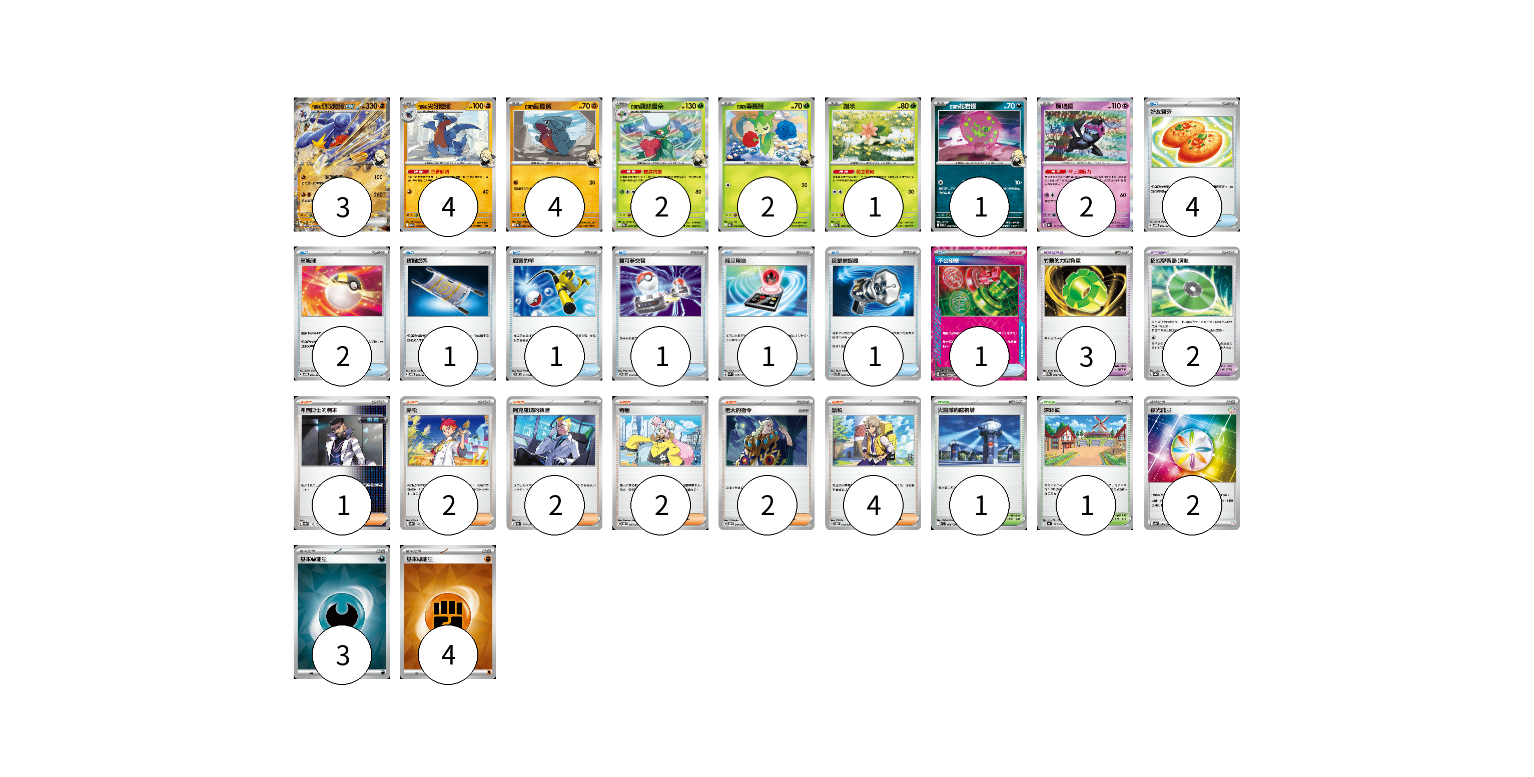 牌組構築方案 以此牌組為基礎新構築牌組 顯示卡面 顯示列表 寶可夢卡(19) 3 4 4 2 2 1 1 2 寶可夢道具(5) 3 2 物品卡(12) 4 2 1 1 1 1 1 1 支援者卡(13) 1 2 2 2 2 4 競技場卡(2) 1 1 能量卡(9) 2 3 4 寶可夢卡(19) 卡牌名稱 張數 卡牌名稱 張數 <竹蘭的>烈咬陸鯊ex SV9a 044/063 03 <竹蘭的>尖牙陸鯊 SV9a 043/063 04 <竹蘭的>圓陸鯊 SV9a 042/063 04 <竹蘭的>羅絲雷朵 SV9a 005/063 02 <竹蘭的>毒薔薇 SV9a 004/063 02 謝米 SV9a 006/063 01 <竹蘭的>花岩怪 SV9a 050/063 01 願增猿 SV8a 075/187 02 寶可夢道具(5) 卡牌名稱 張數 卡牌名稱 張數 竹蘭的力量負重 SV9a 060/063 03 招式學習器 演進 SV8a 160/187 02 物品卡(12) 卡牌名稱 張數 卡牌名稱 張數 好友寶芬 SVOM 012/021 04 高級球 SVOM 013/021 02 夜間擔架 SVOM 016/021 01 厲害釣竿 SVOM 011/021 01 寶可夢交替 SVOM 015/021 01 能量輸送 SVM 128/175 01 反擊捕捉器 SVTS 009/022 01 不公印章 SV5a 053/066 01 支援者卡(13) 卡牌名稱 張數 卡牌名稱 張數 弗圖博士的劇本 SV8a 175/187 01 赤松 SV8a 163/187 02 阿克羅瑪的執著 SV8a 164/187 02 奇樹 SVOD 016/020 02 老大的指令 SVOD 019/020 02 派帕 SVOD 018/020 04 競技場卡(2) 卡牌名稱 張數 卡牌名稱 張數 火箭隊的監視塔 SV10 096/098 01 深缽鎮 SV4a 185/190 01 能量卡(9) 卡牌名稱 張數 卡牌名稱 張數 夜光能量 SV4a 190/190 02 基本【惡】能量 SVM DAR 03 基本【鬥】能量 SVM FIG 04 以此牌組為基礎新構築牌組 牌組編碼 mFbFJE-gJdaOs-ZTuiQf copy 列印牌組單 牌組編碼已複製 分享至SNS