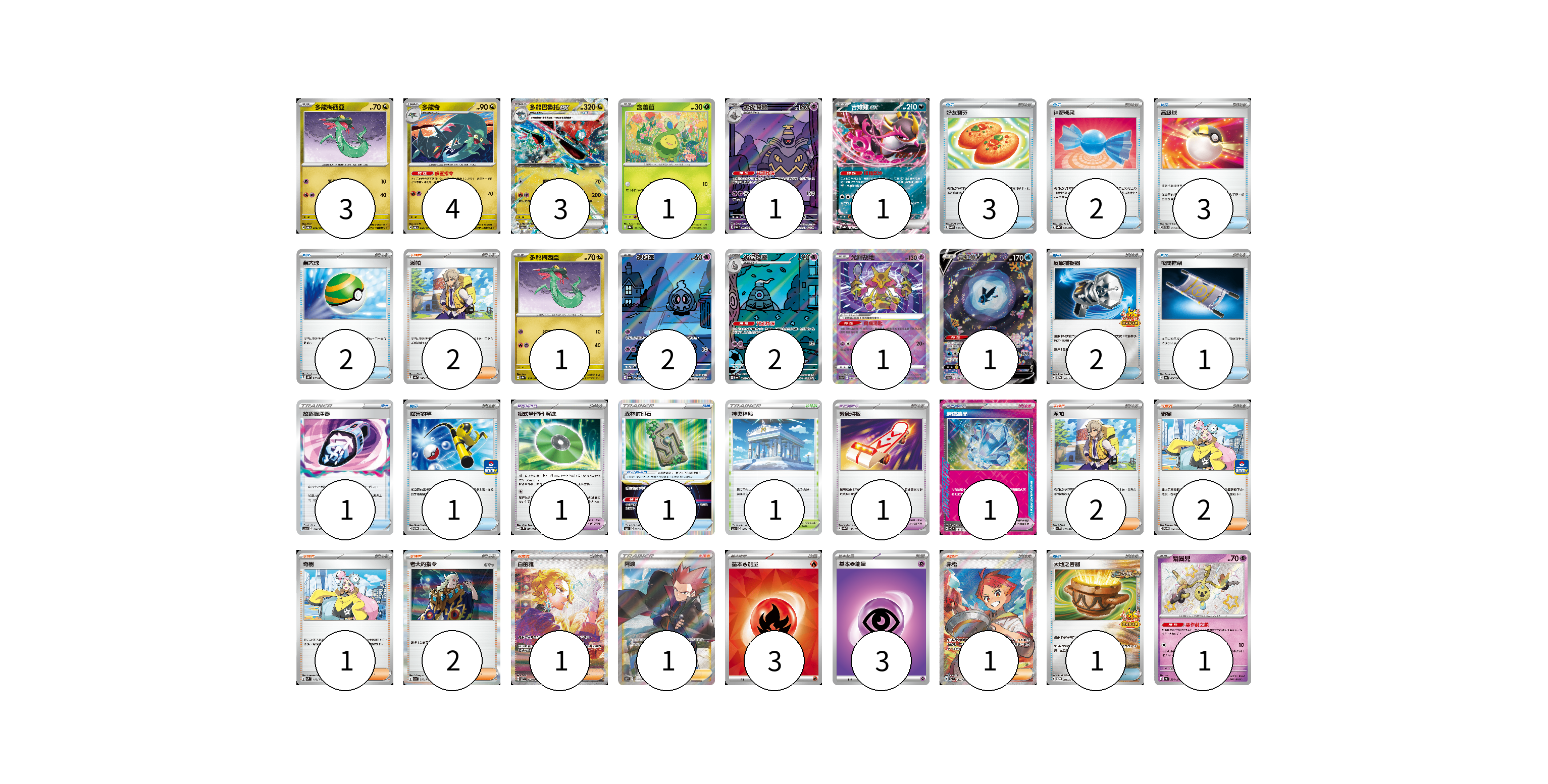 牌組構築方案 以此牌組為基礎新構築牌組 顯示卡面 顯示列表 寶可夢卡(21) 3 4 3 1 1 1 1 2 2 1 1 1 寶可夢道具(4) 1 1 1 1 物品卡(16) 3 2 3 2 2 1 1 1 1 支援者卡(12) 2 2 2 1 2 1 1 1 競技場卡(1) 1 能量卡(6) 3 3 寶可夢卡(21) 卡牌名稱 張數 卡牌名稱 張數 多龍梅西亞 SV6 079/101 03 多龍奇 SV6 080/101 04 多龍巴魯托ex SV6 081/101 03 含羞苞 SV8a 001/187 01 黑夜魔靈 SV6a 070/064 01 吉雉雞ex SV8a 104/187 01 多龍梅西亞 SV8a 118/187 01 夜巡靈 SV6a 068/064 02 彷徨夜靈 SV6a 069/064 02 光輝胡地 S11a 031/068 01 霓虹魚V S12a 216/172 01 鑰圈兒 SV4a 264/190 01 寶可夢道具(4) 卡牌名稱 張數 卡牌名稱 張數 招式學習器 演進 SV4M 063/066 01 森林封印石 S12 092/098 01 緊急滑板 SV8a 153/187 01 璀璨結晶 SV7 094/102 01 物品卡(16) 卡牌名稱 張數 卡牌名稱 張數 好友寶芬 SV5K 063/071 03 神奇糖果 SV3a 053/062 02 高級球 SVTH 011/018 03 巢穴球 SVHK 012/022 02 反擊捕捉器 SV-P 083/SV-P 02 夜間擔架 SV6a 056/064 01 放逐吸塵器 S12a 144/172 01 厲害釣竿 SV-P 112/SV-P 01 大地之容器 SV-P 084/SV-P 01 支援者卡(12) 卡牌名稱 張數 卡牌名稱 張數 派帕 SV4a 180/190 02 派帕 SV1V 076/078 02 奇樹 SV-P 106/SV-P 02 奇樹 SVM 160/175 01 老大的指令 SV1a 069/073 02 白蕾雅 SV7 132/102 01 阿渡 S12 114/098 01 赤松 SV7 123/102 01 競技場卡(1) 卡牌名稱 張數 卡牌名稱 張數 神奧神殿 S12a 169/172 01 能量卡(6) 卡牌名稱 張數 卡牌名稱 張數 基本【火】能量 SVM FIR 03 基本【超】能量 SVAW PSY 03 以此牌組為基礎新構築牌組 牌組編碼 oHndxE-kMglyU-JkQnTS copy 列印牌組單 牌組編碼已複製 分享至SNS