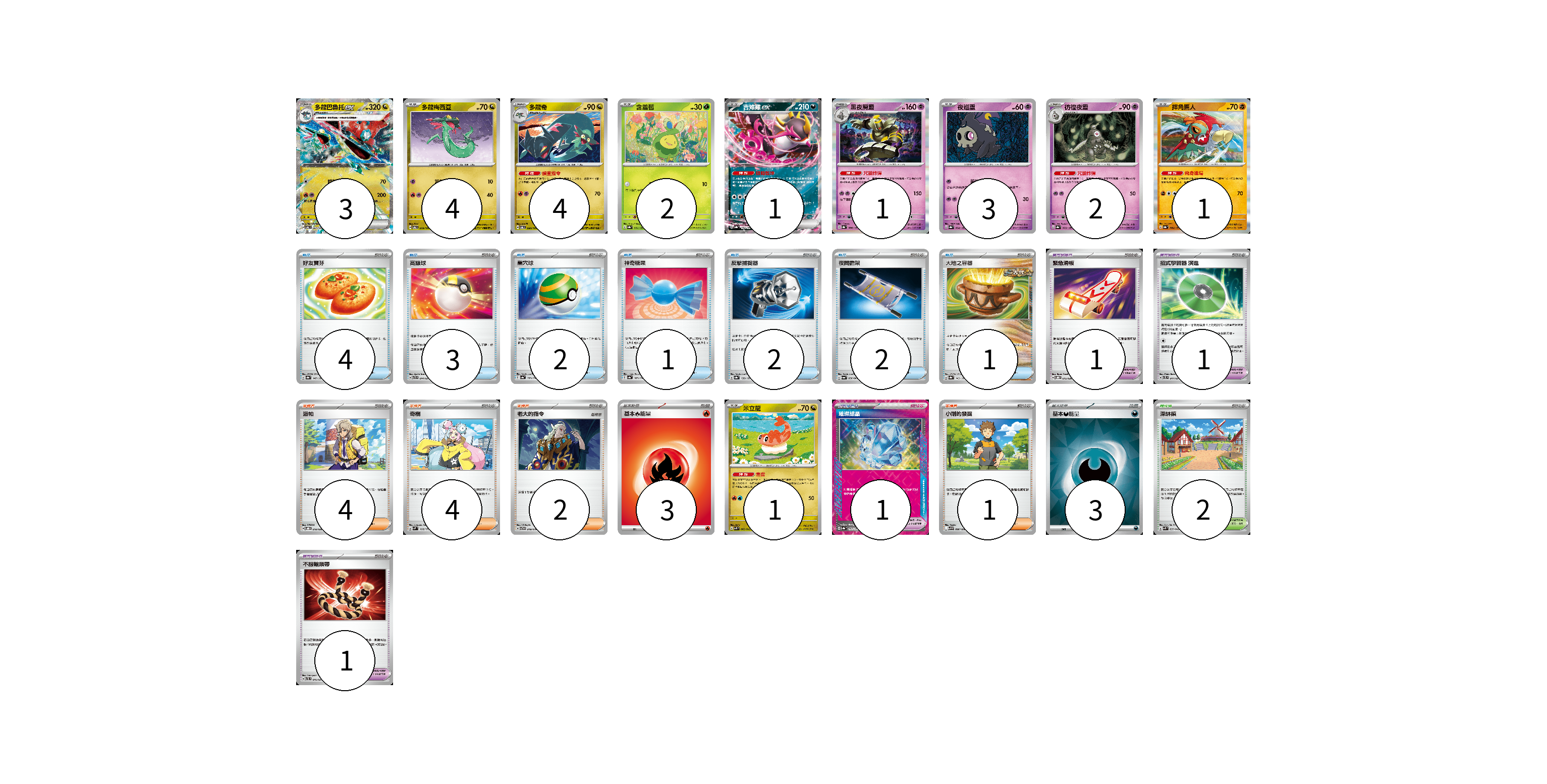 牌組構築方案 以此牌組為基礎新構築牌組 顯示卡面 顯示列表 寶可夢卡(22) 3 4 4 2 1 1 3 2 1 1 寶可夢道具(4) 1 1 1 1 物品卡(15) 4 3 2 1 2 2 1 支援者卡(11) 4 4 2 1 競技場卡(2) 2 能量卡(6) 3 3 寶可夢卡(22) 卡牌名稱 張數 卡牌名稱 張數 多龍巴魯托ex SV6 081/101 03 多龍梅西亞 SV6 079/101 04 多龍奇 SV6 080/101 04 含羞苞 SV8a 001/187 02 吉雉雞ex SV8a 104/187 01 黑夜魔靈 SV8a 066/187 01 夜巡靈 SV8a 064/187 03 彷徨夜靈 SV8a 065/187 02 摔角鷹人 SV8a 084/187 01 米立龍 SVK 002/042 01 寶可夢道具(4) 卡牌名稱 張數 卡牌名稱 張數 緊急滑板 SVOD 015/020 01 招式學習器 演進 SVTL 017/021 01 璀璨結晶 SV8a 152/187 01 不服輸頭帶 SVTL 016/021 01 物品卡(15) 卡牌名稱 張數 卡牌名稱 張數 好友寶芬 SV8a 147/187 04 高級球 SVTR 014/021 03 巢穴球 SV4a 159/190 02 神奇糖果 SV4a 163/190 01 反擊捕捉器 SV8a 139/187 02 夜間擔架 SV6a 056/064 02 大地之容器 SV8a 143/187 01 支援者卡(11) 卡牌名稱 張數 卡牌名稱 張數 派帕 SVOD 018/020 04 奇樹 SVM 160/175 04 老大的指令 SVTG 019/019 02 小剛的發掘 SV9 096/100 01 競技場卡(2) 卡牌名稱 張數 卡牌名稱 張數 深缽鎮 SVK 039/042 02 能量卡(6) 卡牌名稱 張數 卡牌名稱 張數 基本【火】能量 SVD FIR 03 基本【惡】能量 SVOM DAR 03 以此牌組為基礎新構築牌組 牌組編碼 ogvzuG-KrDUxm-SFmbfH copy 列印牌組單 牌組編碼已複製 分享至SNS