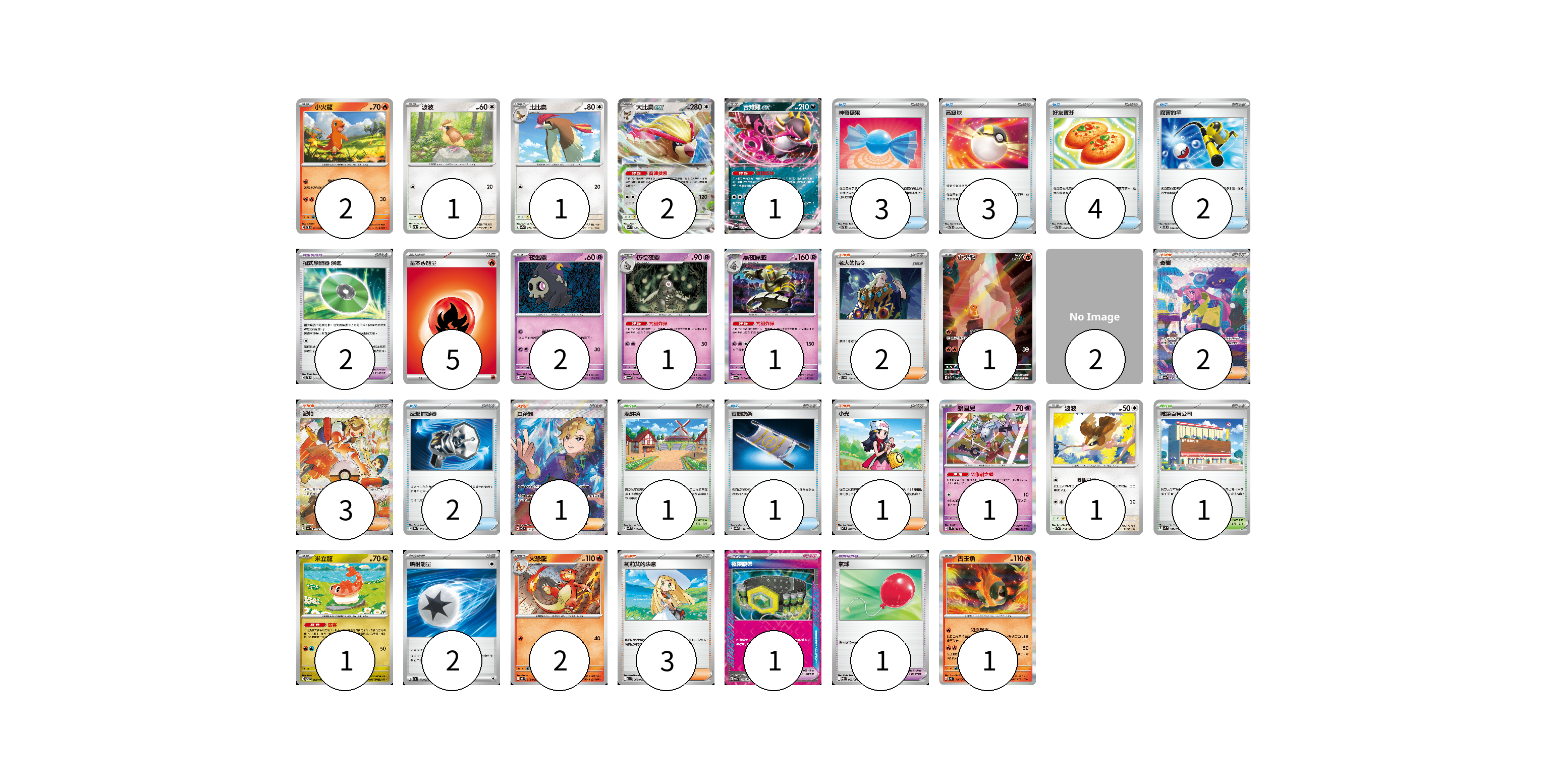 牌組構築方案 以此牌組為基礎新構築牌組 顯示卡面 顯示列表 寶可夢卡(18) 2 1 1 2 1 2 1 1 1 1 1 1 2 1 寶可夢道具(4) 2 1 1 物品卡(15) 3 3 4 2 2 1 支援者卡(12) 2 2 3 1 1 3 競技場卡(2) 1 1 能量卡(7) 5 2 寶可夢卡(18) 卡牌名稱 張數 卡牌名稱 張數 小火龍 SVTL 001/021 02 波波 SV3 087/108 01 比比鳥 SV2a 017/165 01 大比鳥ex SV3 089/108 02 吉雉雞ex SV6a 038/064 01 夜巡靈 SV6a 018/064 02 彷徨夜靈 SV6a 019/064 01 黑夜魔靈 SV6a 020/064 01 小火龍 SV2a 168/165 01 鑰圈兒 SV1V 045/078 01 波波 SV2a 016/165 01 米立龍 SV6 082/101 01 火恐龍 M2 012/080 02 古玉魚 SV4K 016/066 01 寶可夢道具(4) 卡牌名稱 張數 卡牌名稱 張數 招式學習器 演進 SVTL 017/021 02 極限腰帶 SV5K 066/071 01 氣球 SV11B 082/086 01 物品卡(15) 卡牌名稱 張數 卡牌名稱 張數 神奇糖果 SVTL 013/021 03 高級球 SVTL 012/021 03 好友寶芬 SVTL 010/021 04 厲害釣竿 SVTL 009/021 02 反擊捕捉器 SV8a 139/187 02 夜間擔架 SV8a 151/187 01 支援者卡(12) 卡牌名稱 張數 卡牌名稱 張數 老大的指令(魁奇思) SVD 138/139 02 奇樹 SV4a 350/190 02 派帕 SV4a 353/190 03 白蕾雅 SV7 126/102 01 小光 M2 077/080 01 莉莉艾的決意 M1L 062/063 03 競技場卡(2) 卡牌名稱 張數 卡牌名稱 張數 深缽鎮 SVK 039/042 01 城鎮百貨公司 SV3 107/108 01 能量卡(7) 卡牌名稱 張數 卡牌名稱 張數 基本【火】能量 SVTL FIR 05 噴射能量 SV1a 072/073 02 以此牌組為基礎新構築牌組 牌組編碼 pPRcly-wCJMdF-cnHDpf copy 列印牌組單 牌組編碼已複製 分享至SNS