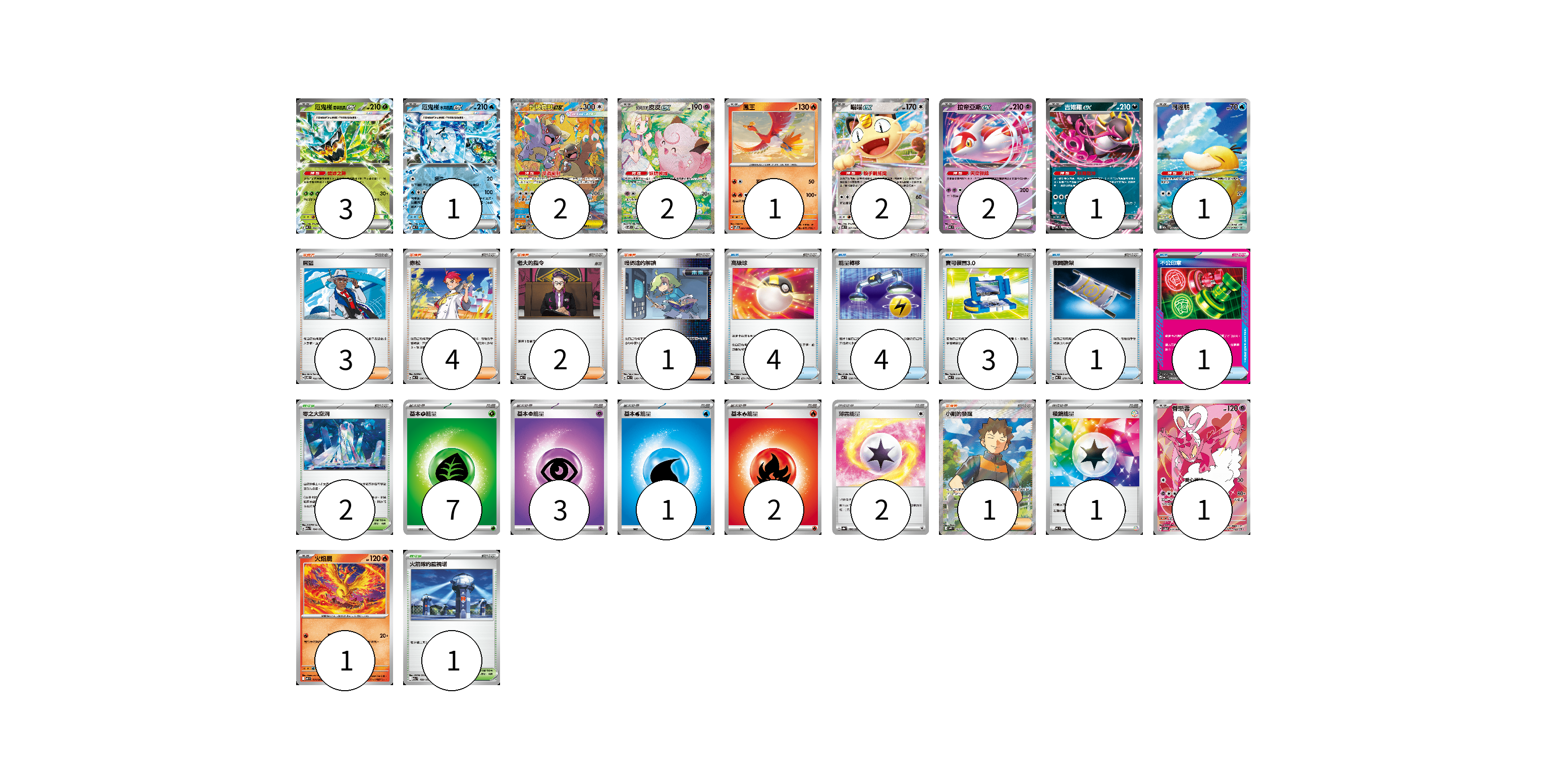牌組構築方案 以此牌組為基礎新構築牌組 顯示卡面 顯示列表 寶可夢卡(17) 3 1 2 2 1 2 2 1 1 1 1 物品卡(13) 4 4 3 1 1 支援者卡(11) 3 4 2 1 1 競技場卡(3) 2 1 能量卡(16) 7 3 1 2 2 1 寶可夢卡(17) 卡牌名稱 張數 卡牌名稱 張數 厄鬼椪 碧草面具ex MC 082/742 03 厄鬼椪 水井面具ex MC 224/742 01 超級袋獸ex M1S 089/063 02 莉莉艾的皮皮ex SV9 126/100 02 鳳王 SVPS 003/008 01 喵喵ex M3 061/080 02 拉帝亞斯ex MC 312/742 02 吉雉雞ex MC 489/742 01 可達鴨 M2a 199/193 01 眷戀雲 SV5a 074/066 01 火焰鳥 M2 014/080 01 物品卡(13) 卡牌名稱 張數 卡牌名稱 張數 高級球 MC 651/742 04 能量轉移 MC 638/742 04 寶可裝置3.0 MC 660/742 03 夜間擔架 MC 670/742 01 不公印章 MC 633/742 01 支援者卡(11) 卡牌名稱 張數 卡牌名稱 張數 席藍 SV8 102/106 03 赤松 MC 696/742 04 老大的指令 MC 724/742 02 暗碼迷的解讀 MC 698/742 01 小剛的發掘 SV9 123/100 01 競技場卡(3) 卡牌名稱 張數 卡牌名稱 張數 零之大空洞 M2a 184/193 02 火箭隊的監視塔 M2a 189/193 01 能量卡(16) 卡牌名稱 張數 卡牌名稱 張數 基本【草】能量 MJ GRA 07 基本【超】能量 MC PSY 03 基本【水】能量 MC WAT 01 基本【火】能量 MC FIR 02 薄霧能量 SV8a 186/187 02 稜鏡能量 MC 739/742 01 以此牌組為基礎新構築牌組 牌組編碼 qMARYG-XsTVAp-fAipzR copy 列印牌組單 牌組編碼已複製 分享至SNS