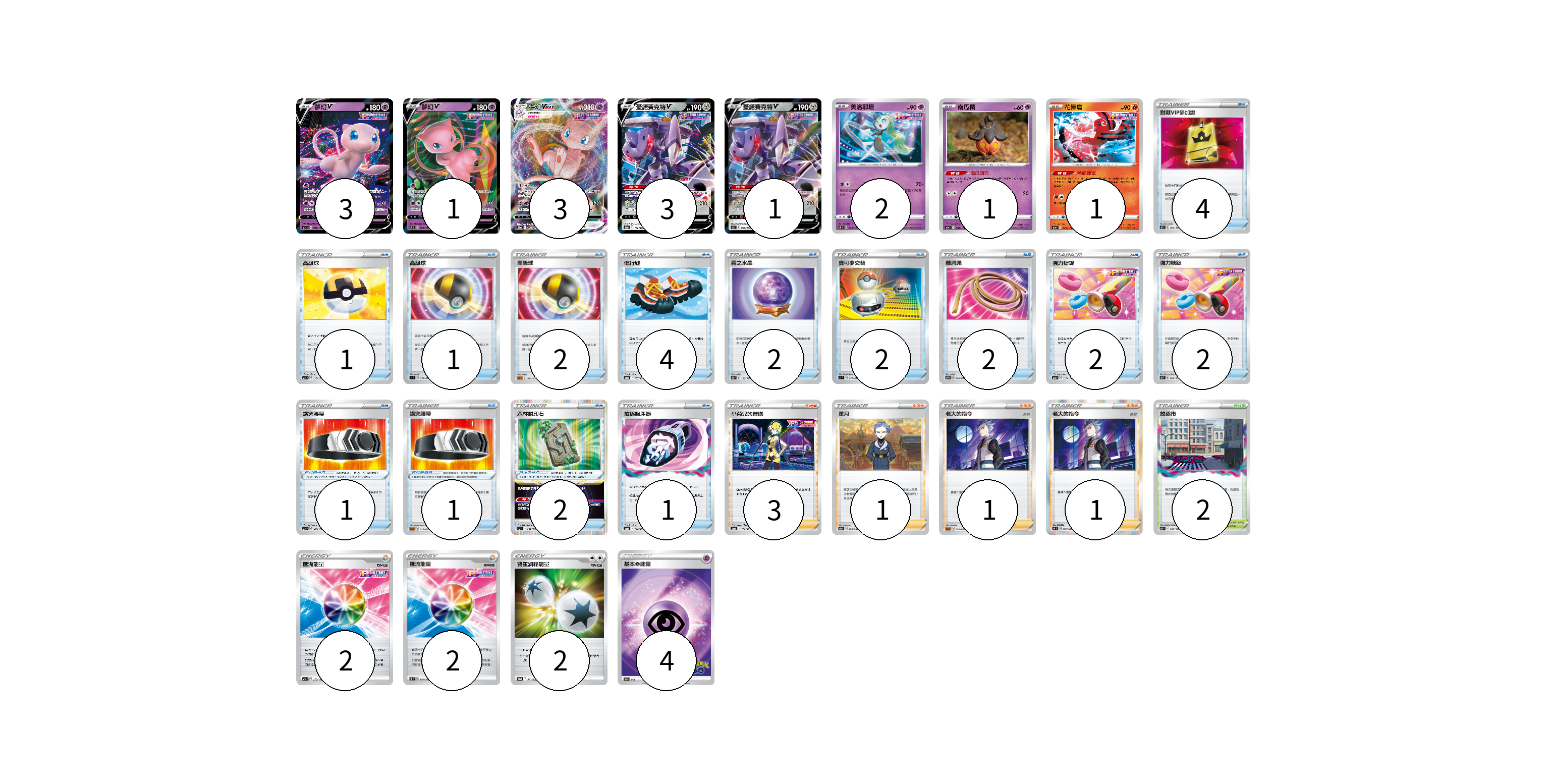 牌組構築方案 以此牌組為基礎新構築牌組 顯示卡面 顯示列表 寶可夢卡(15) 3 1 3 3 1 2 1 1 寶可夢道具(4) 1 1 2 物品卡(23) 4 1 1 2 4 2 2 2 2 2 1 支援者卡(6) 3 1 1 1 競技場卡(2) 2 能量卡(10) 2 2 2 4 寶可夢卡(15) 卡牌名稱 張數 卡牌名稱 張數 夢幻V S12a 053/172 03 夢幻V S8 039/100 01 夢幻VMAX S12a 054/172 03 蓋諾賽克特V S12a 102/172 03 蓋諾賽克特V S8 069/100 01 美洛耶塔 S8 048/100 02 南瓜精 S12a 061/172 01 花舞鳥 S12a 022/172 01 寶可夢道具(4) 卡牌名稱 張數 卡牌名稱 張數 講究腰帶 S12a 145/172 01 講究腰帶 SLL 015/021 01 森林封印石 S12 092/098 02 物品卡(23) 卡牌名稱 張數 卡牌名稱 張數 對戰VIP參加證 S8 091/100 04 高級球 S12a 138/172 01 高級球 SI 375/414 01 高級球 SLL 013/021 02 健行鞋 S12a 137/172 04 霧之水晶 S8b 135/184 02 寶可夢交替 SI 377/414 02 離洞繩 S7D 056/067 02 強力糖錠 S12a 139/172 02 強力糖錠 S8 092/100 02 放逐吸塵器 S12a 144/172 01 支援者卡(6) 卡牌名稱 張數 卡牌名稱 張數 小菊兒的璀璨 S12a 150/172 03 星月 S9a 064/067 01 老大的指令(赤日) SLL 020/021 01 老大的指令(赤日) S9 097/100 01 競技場卡(2) 卡牌名稱 張數 卡牌名稱 張數 放逐市 S11 099/100 02 能量卡(10) 卡牌名稱 張數 卡牌名稱 張數 匯流能量 S12a 172/172 02 匯流能量 S8 100/100 02 雙重渦輪能量 S12a 171/172 02 基本超能量 S10b PSY 04 以此牌組為基礎新構築牌組 牌組編碼 rhrUja-iZXPiH-UavXeg copy 列印牌組單 牌組編碼已複製 分享至SNS