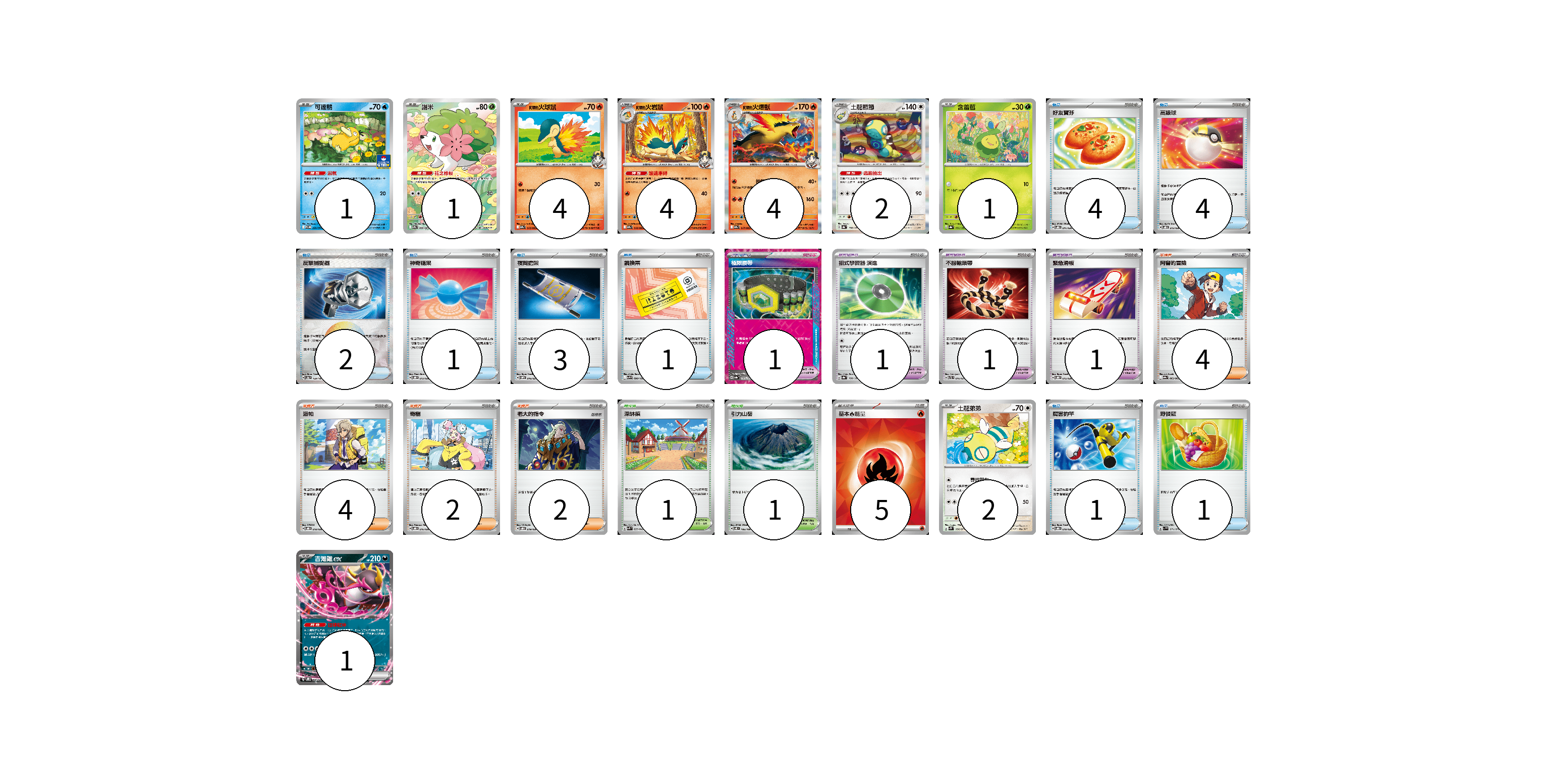 牌組構築方案 以此牌組為基礎新構築牌組 顯示卡面 顯示列表 寶可夢卡(20) 1 1 4 4 4 2 1 2 1 寶可夢道具(4) 1 1 1 1 物品卡(17) 4 4 2 1 3 1 1 1 支援者卡(12) 4 4 2 2 競技場卡(2) 1 1 能量卡(5) 5 寶可夢卡(20) 卡牌名稱 張數 卡牌名稱 張數 可達鴨 SV-P 220/SV-P 01 謝米 SV9a 066/063 01 <阿響的>火球鼠 SV9a 015/063 04 <阿響的>火岩鼠 SV9a 016/063 04 <阿響的>火爆獸 SV9a 017/063 04 土龍節節 SV8a 130/187 02 含羞苞 SV8a 001/187 01 土龍弟弟 SV2P 056/071 02 吉雉雞ex SVOD 004/020 01 寶可夢道具(4) 卡牌名稱 張數 卡牌名稱 張數 極限腰帶 SV8a 159/187 01 招式學習器 演進 SV8a 160/187 01 不服輸頭帶 SVTL 016/021 01 緊急滑板 SVOD 015/020 01 物品卡(17) 卡牌名稱 張數 卡牌名稱 張數 好友寶芬 SVOD 011/020 04 高級球 SVOD 012/020 04 反擊捕捉器 SV8a 139/187 02 神奇糖果 SVOD 013/020 01 夜間擔架 SVOM 016/021 03 調換票 SV9 090/100 01 厲害釣竿 SVOD 010/020 01 野餐籃 SV1V 071/078 01 支援者卡(12) 卡牌名稱 張數 卡牌名稱 張數 阿響的冒險 SV9a 063/063 04 派帕 SVOD 018/020 04 奇樹 SVOD 016/020 02 老大的指令 SVOD 019/020 02 競技場卡(2) 卡牌名稱 張數 卡牌名稱 張數 深缽鎮 SVK 039/042 01 引力山岳 SV8 106/106 01 能量卡(5) 卡牌名稱 張數 卡牌名稱 張數 基本【火】能量 SVK FIR 05 以此牌組為基礎新構築牌組 牌組編碼 ruflgS-edcUyL-rXEklP copy 列印牌組單 牌組編碼已複製 分享至SNS