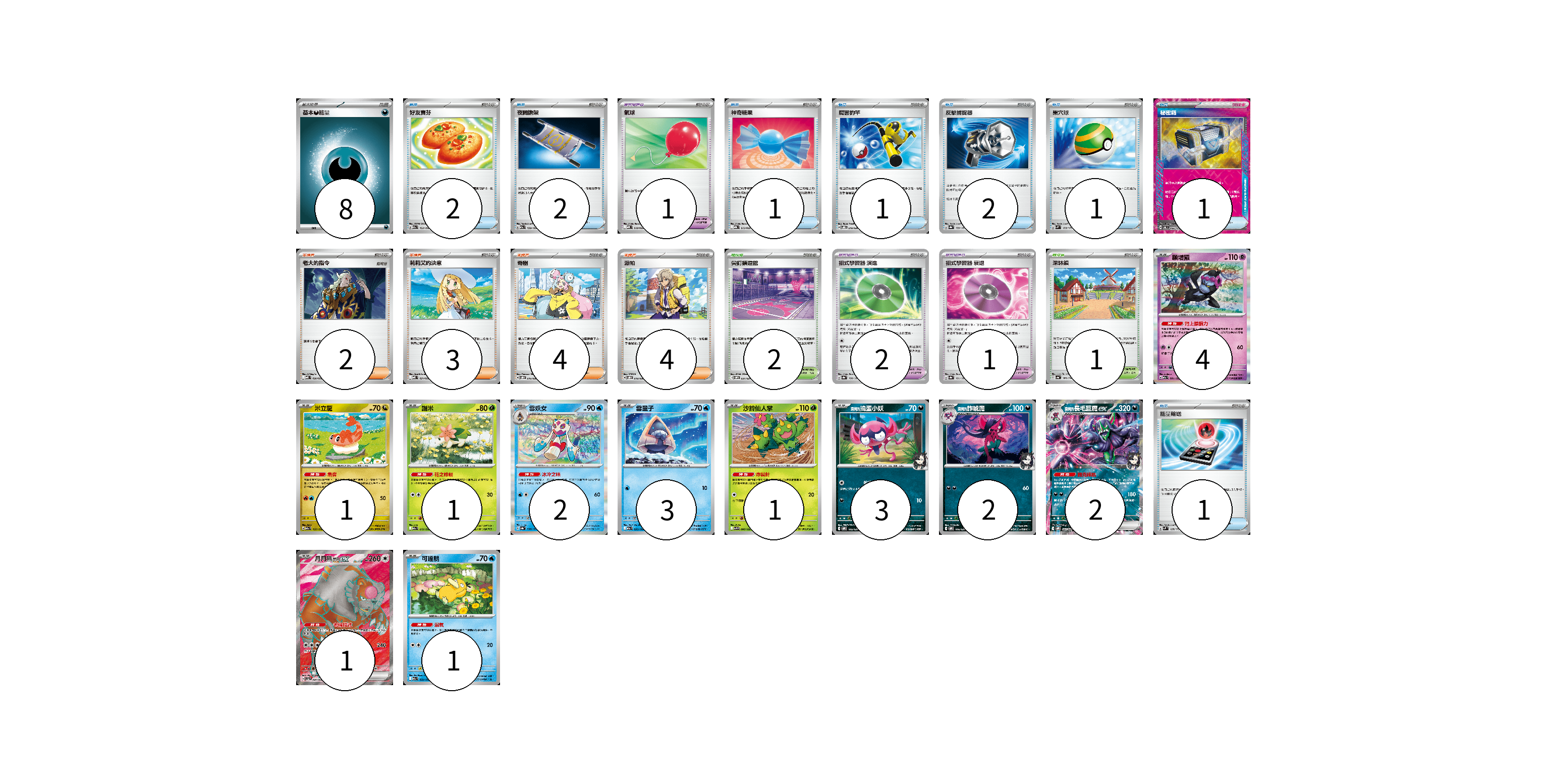 牌組構築方案 以此牌組為基礎新構築牌組 顯示卡面 顯示列表 寶可夢卡(21) 4 1 1 2 3 1 3 2 2 1 1 寶可夢道具(3) 2 1 物品卡(12) 2 2 1 1 1 2 1 1 1 支援者卡(13) 2 3 4 4 競技場卡(3) 2 1 能量卡(8) 8 寶可夢卡(21) 卡牌名稱 張數 卡牌名稱 張數 願增猿 M2a 081/193 04 米立龍 M2a 135/193 01 謝米 M2a 012/193 01 雪妖女 SV8a 038/187 02 雪童子 M2a 035/193 03 沙鈴仙人掌 SV9 006/100 01 <瑪俐的>搗蛋小妖 SVOM 005/021 03 <瑪俐的>詐唬魔 SVOM 006/021 02 <瑪俐的>長毛巨魔ex SVOM 007/021 02 月月熊 赫月 ex SV5a 084/066 01 可達鴨 M2a 032/193 01 寶可夢道具(3) 卡牌名稱 張數 卡牌名稱 張數 招式學習器 演進 SV8a 160/187 02 招式學習器 衰退 SV8a 161/187 01 物品卡(12) 卡牌名稱 張數 卡牌名稱 張數 好友寶芬 M2a 153/193 02 夜間擔架 M2a 159/193 02 氣球 MBD 018/022 01 神奇糖果 MBG 013/022 01 厲害釣竿 SVOD 010/020 01 反擊捕捉器 SV8a 139/187 02 巢穴球 SVM 133/175 01 秘密箱 SV6 092/101 01 能量輸送 SVM 128/175 01 支援者卡(13) 卡牌名稱 張數 卡牌名稱 張數 老大的指令 MBD 020/022 02 莉莉艾的決意 MBD 021/022 03 奇樹 SVOD 016/020 04 派帕 SVOD 018/020 04 競技場卡(3) 卡牌名稱 張數 卡牌名稱 張數 尖釘鎮道館 SVOM 021/021 02 深缽鎮 SV4a 185/190 01 能量卡(8) 卡牌名稱 張數 卡牌名稱 張數 基本【惡】能量 M-P DAR 08 以此牌組為基礎新構築牌組 牌組編碼 sQedWJ-RSXugP-ALTzyF copy 列印牌組單 牌組編碼已複製 分享至SNS