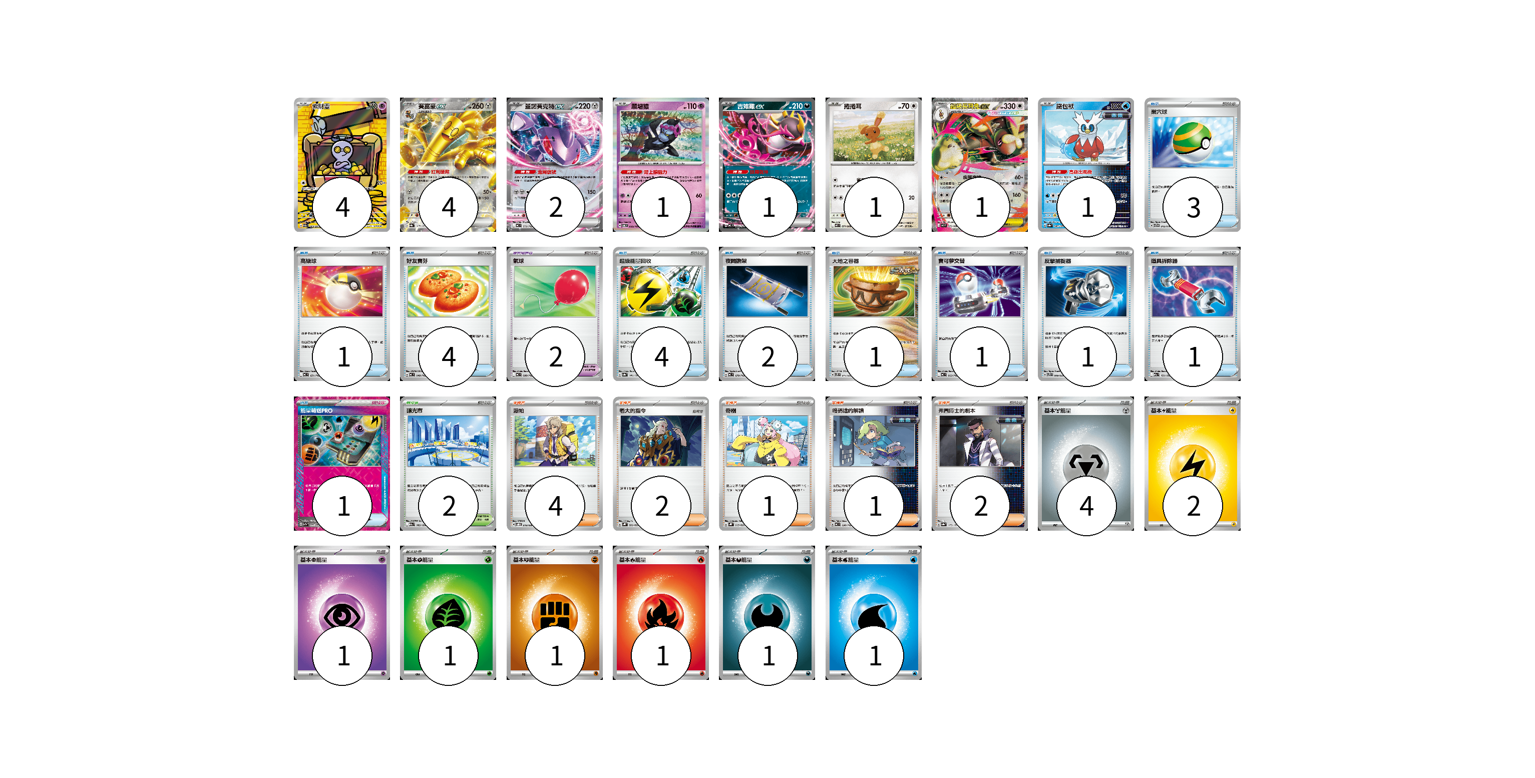 牌組構築方案 以此牌組為基礎新構築牌組 顯示卡面 顯示列表 寶可夢卡(15) 4 4 2 1 1 1 1 1 寶可夢道具(2) 2 物品卡(19) 3 1 4 4 2 1 1 1 1 1 支援者卡(10) 4 2 1 1 2 競技場卡(2) 2 能量卡(12) 4 2 1 1 1 1 1 1 寶可夢卡(15) 卡牌名稱 張數 卡牌名稱 張數 索財靈 SV3a 068/062 04 賽富豪ex SV8a 117/187 04 蓋諾賽克特ex MC 512/742 02 願增猿 SV6 055/101 01 吉雉雞ex MC 489/742 01 捲捲耳 M2 071/080 01 超級長耳兔ex M2 072/080 01 鐵包袱 SV8a 047/187 01 寶可夢道具(2) 卡牌名稱 張數 卡牌名稱 張數 氣球 MC 688/742 02 物品卡(19) 卡牌名稱 張數 卡牌名稱 張數 巢穴球 SVTG 012/019 03 高級球 MC 651/742 01 好友寶芬 MC 648/742 04 超級能量回收 SV8a 141/187 04 夜間擔架 MC 670/742 02 大地之容器 SVTS 011/022 01 寶可夢交替 MC 663/742 01 反擊捕捉器 SVTS 009/022 01 道具拆除器 M2a 151/193 01 能量輸送PRO SV7a 052/064 01 支援者卡(10) 卡牌名稱 張數 卡牌名稱 張數 派帕 SVOD 018/020 04 老大的指令 SVHK 022/022 02 奇樹 SVHK 019/022 01 暗碼迷的解讀 MC 698/742 01 弗圖博士的劇本 SV8a 175/187 02 競技場卡(2) 卡牌名稱 張數 卡牌名稱 張數 釀光市 M2a 185/193 02 能量卡(12) 卡牌名稱 張數 卡牌名稱 張數 基本【鋼】能量 MC MET 04 基本【雷】能量 MC LIG 02 基本【超】能量 MC PSY 01 基本【草】能量 MC GRA 01 基本【鬥】能量 MC FIG 01 基本【火】能量 MC FIR 01 基本【惡】能量 MC DAR 01 基本【水】能量 MC WAT 01 以此牌組為基礎新構築牌組 牌組編碼 stjoBE-ROPDzM-nvIRmD copy 列印牌組單 牌組編碼已複製 分享至SNS