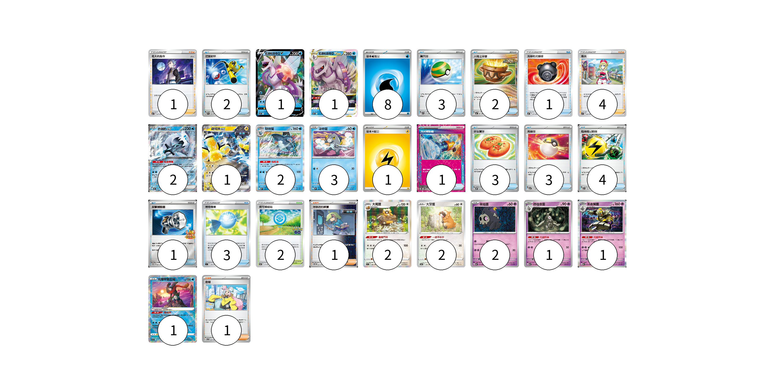 牌組構築方案 以此牌組為基礎新構築牌組 顯示卡面 顯示列表 寶可夢卡(19) 1 1 2 1 2 3 2 2 2 1 1 1 物品卡(23) 2 3 2 1 1 3 3 4 1 3 支援者卡(7) 1 4 1 1 競技場卡(2) 2 能量卡(9) 8 1 寶可夢卡(19) 卡牌名稱 張數 卡牌名稱 張數 起源帕路奇亞V S10P 022/067 01 起源帕路奇亞VSTAR S10P 023/067 01 古劍豹ex SV4a 054/190 02 鐵臂膀ex SV4M 027/066 01 戟脊龍 SV2P 027/071 02 涼脊龍 SV2P 024/071 03 大尾狸 S9 082/100 02 大牙狸 S12a 121/172 02 夜巡靈 SV6a 018/064 02 彷徨夜靈 SV6a 019/064 01 黑夜魔靈 SV6a 020/064 01 光輝甲賀忍蛙 S9a 026/067 01 物品卡(23) 卡牌名稱 張數 卡牌名稱 張數 厲害釣竿 SV2P 066/071 02 巢穴球 SVHM 012/022 03 大地之容器 SV4K 060/066 02 洗翠的沉重球 SVB 014/028 01 頂尖捕捉器 SV5M 062/071 01 好友寶芬 SV5K 063/071 03 高級球 SVHK 013/022 03 超級能量回收 SV4a 157/190 04 反擊捕捉器 SV-P 083/SV-P 01 神奇糖果 SI 376/414 03 支援者卡(7) 卡牌名稱 張數 卡牌名稱 張數 老大的指令(赤日) SVB 024/028 01 珠貝 SVF 025/038 04 暗碼迷的解讀 SV5M 067/071 01 奇樹 SVF 029/038 01 競技場卡(2) 卡牌名稱 張數 卡牌名稱 張數 寶可補給站 S10b 071/071 02 能量卡(9) 卡牌名稱 張數 卡牌名稱 張數 基本水能量 sv-p WAT 08 基本【雷】能量 SVHM LIG 01 以此牌組為基礎新構築牌組 牌組編碼 tYfoQY-mOilVe-NxoDkG copy 列印牌組單 牌組編碼已複製 分享至SNS