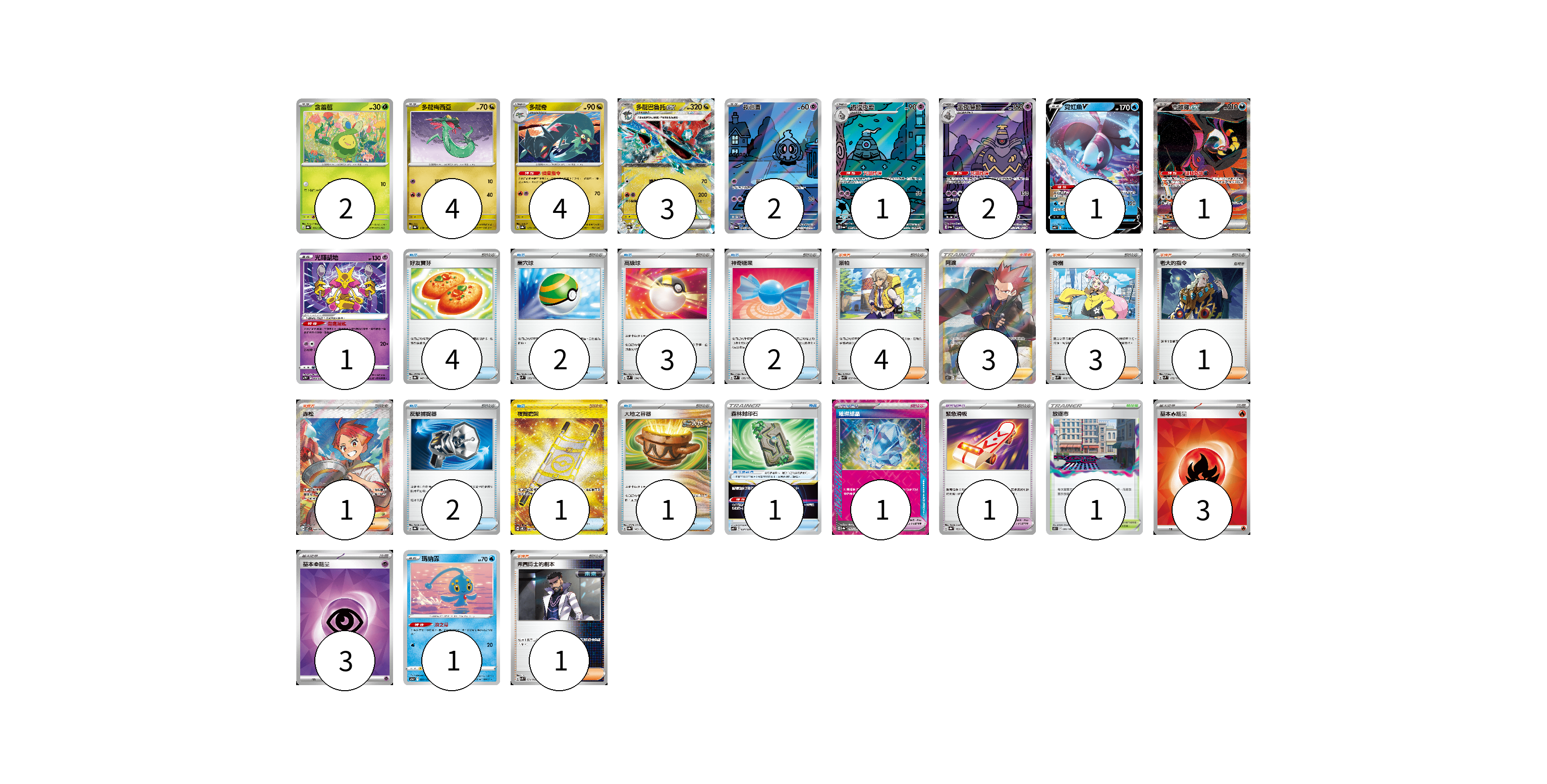 牌組構築方案 以此牌組為基礎新構築牌組 顯示卡面 顯示列表 寶可夢卡(22) 2 4 4 3 2 1 2 1 1 1 1 寶可夢道具(2) 1 1 物品卡(16) 4 2 3 2 2 1 1 1 支援者卡(13) 4 3 3 1 1 1 競技場卡(1) 1 能量卡(6) 3 3 寶可夢卡(22) 卡牌名稱 張數 卡牌名稱 張數 含羞苞 SV8a 001/187 02 多龍梅西亞 SV8a 118/187 04 多龍奇 SV8a 119/187 04 多龍巴魯托ex SV8a 120/187 03 夜巡靈 SV6a 068/064 02 彷徨夜靈 SV6a 069/064 01 黑夜魔靈 SV6a 070/064 02 霓虹魚V SVB 008/028 01 吉雉雞ex SV6a 089/064 01 光輝胡地 SVTM 006/022 01 瑪納霏 S12a 029/172 01 寶可夢道具(2) 卡牌名稱 張數 卡牌名稱 張數 璀璨結晶 SV8a 152/187 01 緊急滑板 SV8a 153/187 01 物品卡(16) 卡牌名稱 張數 卡牌名稱 張數 好友寶芬 SV8a 147/187 04 巢穴球 SVM 133/175 02 高級球 SVM 134/175 03 神奇糖果 SVM 135/175 02 反擊捕捉器 SV8a 139/187 02 夜間擔架 SV8 137/106 01 大地之容器 SV8a 143/187 01 森林封印石 SVF 024/038 01 支援者卡(13) 卡牌名稱 張數 卡牌名稱 張數 派帕 SVK 035/042 04 阿渡 S12 114/098 03 奇樹 SVM 160/175 03 老大的指令 SVM 172/175 01 赤松 SV7 123/102 01 弗圖博士的劇本 SVK 034/042 01 競技場卡(1) 卡牌名稱 張數 卡牌名稱 張數 放逐市 S11 099/100 01 能量卡(6) 卡牌名稱 張數 卡牌名稱 張數 基本【火】能量 SVK FIR 03 基本【超】能量 SVK PSY 03 以此牌組為基礎新構築牌組 牌組編碼 vvaKun-mhosCj-PDbhpD copy 列印牌組單 牌組編碼已複製 分享至SNS