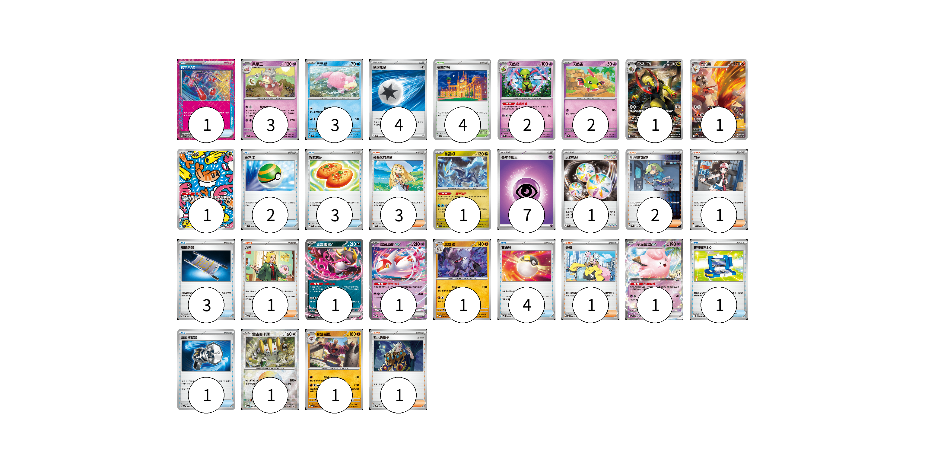 牌組構築方案 以此牌組為基礎新構築牌組 顯示卡面 顯示列表 寶可夢卡(20) 3 3 2 2 1 1 1 1 1 1 1 1 1 1 物品卡(15) 1 2 3 3 4 1 1 支援者卡(9) 3 2 1 1 1 1 競技場卡(4) 4 能量卡(12) 4 7 1 寶可夢卡(20) 卡牌名稱 張數 卡牌名稱 張數 呆呆王 SV7 039/102 03 呆呆獸 SV4a 036/190 03 天然鳥 SV8a 061/187 02 天然雀 SV8a 060/187 02 雙斧戰龍 SV11B 152/086 01 火焰雞 SV10 101/098 01 米立龍 SV6 112/101 01 酋雷姆 SV6a 047/064 01 吉雉雞ex SVOD 004/020 01 拉帝亞斯ex MBD 003/022 01 棄世猴 SV8 062/106 01 莉莉艾的皮皮ex SV9 033/100 01 雷吉奇卡斯 SV8a 132/187 01 修建老匠 SV6 061/101 01 物品卡(15) 卡牌名稱 張數 卡牌名稱 張數 釣竿MAX SV8a 142/187 01 巢穴球 SVK 016/042 02 好友寶芬 MBD 013/022 03 夜間擔架 MBD 016/022 03 高級球 MBD 014/022 04 寶可裝置3.0 SV11B 081/086 01 反擊捕捉器 SV8a 139/187 01 支援者卡(9) 卡牌名稱 張數 卡牌名稱 張數 莉莉艾的決意 MBD 021/022 03 暗碼迷的解讀 SV8a 165/187 02 鬥子 SV11W 085/086 01 八朔 SV6 098/101 01 奇樹 SVOD 016/020 01 老大的指令 SVM 172/175 01 競技場卡(4) 卡牌名稱 張數 卡牌名稱 張數 夜間學院 SV6a 064/064 04 能量卡(12) 卡牌名稱 張數 卡牌名稱 張數 噴射能量 SVK 040/042 04 基本【超】能量 MBD PSY 07 反轉能量 SV4a 189/190 01 以此牌組為基礎新構築牌組 牌組編碼 wnTuXS-Kkjvhe-fJUvMY copy 列印牌組單 牌組編碼已複製 分享至SNS