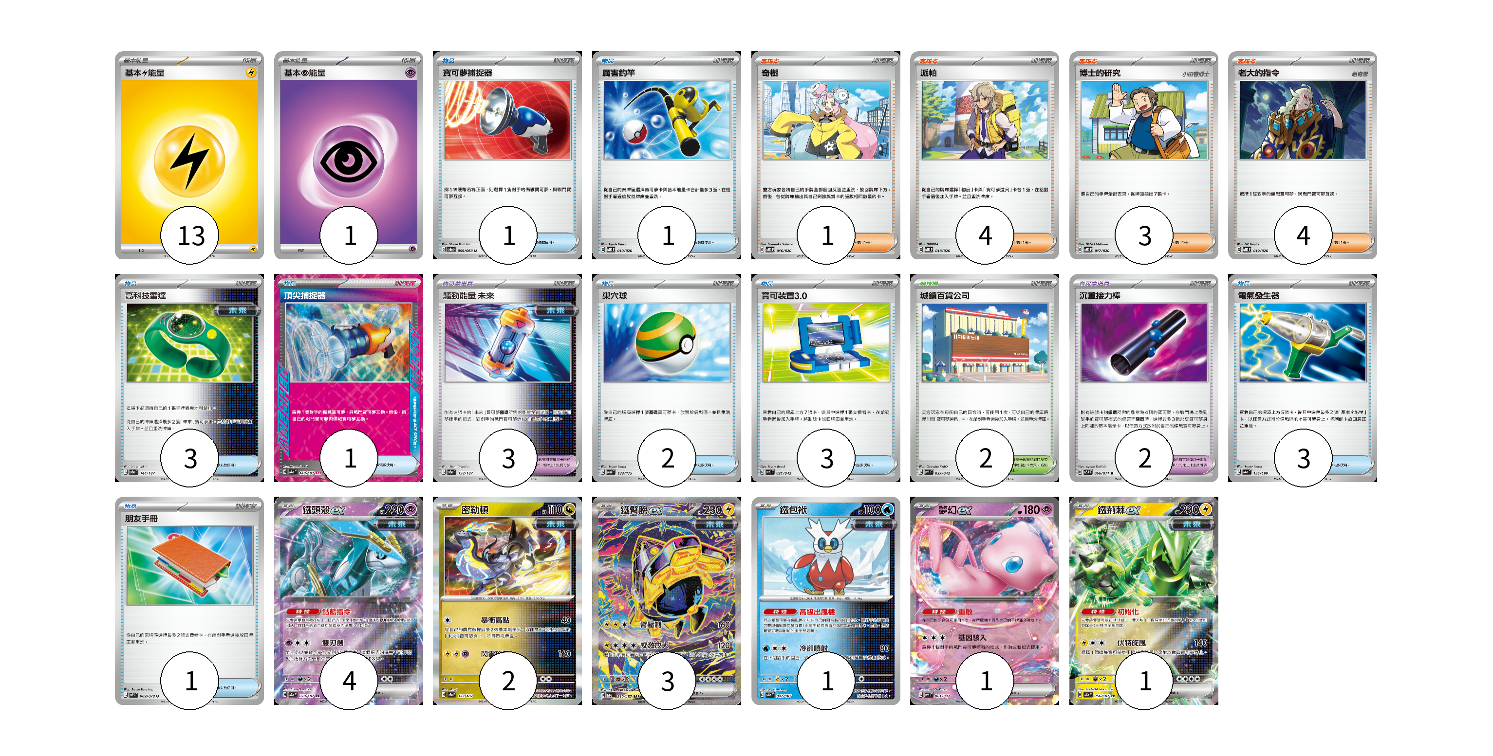 牌組構築方案 以此牌組為基礎新構築牌組 顯示卡面 顯示列表 寶可夢卡(12) 4 2 3 1 1 1 寶可夢道具(5) 3 2 物品卡(15) 1 1 3 1 2 3 3 1 支援者卡(12) 1 4 3 4 競技場卡(2) 2 能量卡(14) 13 1 寶可夢卡(12) 卡牌名稱 張數 卡牌名稱 張數 鐵頭殼ex SV8a 078/187 04 密勒頓 SV8a 123/187 02 鐵臂膀ex SV8a 210/187 03 鐵包袱 SV8a 047/187 01 夢幻ex SVK 001/042 01 鐵荊棘ex SV8a 056/187 01 寶可夢道具(5) 卡牌名稱 張數 卡牌名稱 張數 驅勁能量 未來 SV8a 158/187 03 沉重接力棒 SV5M 066/071 02 物品卡(15) 卡牌名稱 張數 卡牌名稱 張數 寶可夢捕捉器 SV9a 059/063 01 厲害釣竿 SVOD 010/020 01 高科技雷達 SV8a 144/187 03 頂尖捕捉器 SV8a 148/187 01 巢穴球 SVM 133/175 02 寶可裝置3.0 SVK 021/042 03 電氣發生器 SV4a 156/190 03 朋友手冊 SV1S 069/078 01 支援者卡(12) 卡牌名稱 張數 卡牌名稱 張數 奇樹 SVOD 016/020 01 派帕 SVOD 018/020 04 博士的研究 SVOD 017/020 03 老大的指令 SVOD 019/020 04 競技場卡(2) 卡牌名稱 張數 卡牌名稱 張數 城鎮百貨公司 SVK 037/042 02 能量卡(14) 卡牌名稱 張數 卡牌名稱 張數 基本【雷】能量 SVHM LIG 13 基本【超】能量 SVHM PSY 01 以此牌組為基礎新構築牌組 牌組編碼 yyUqhI-uuowOe-RUOJcw copy 列印牌組單 牌組編碼已複製 分享至SNS