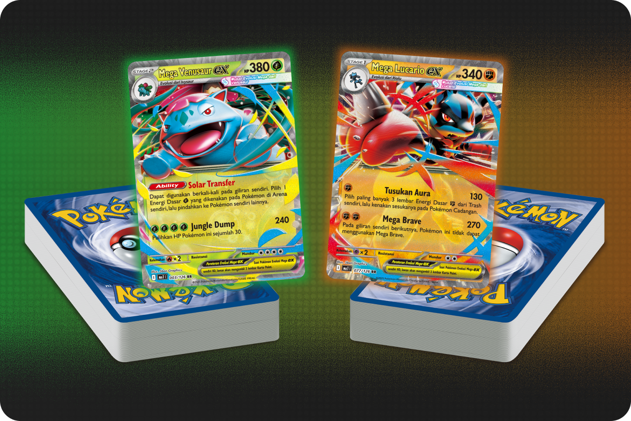 Dapat menikmati permainan yang lebih strategis dengan Deck kompetitif 60 lembar yang menggunakan Pokémon Evolusi Mega terbaru. Direkomendasikan untuk orang yang sudah tahu peraturan mendasar dan ingin bermain menggunakan Deck yang lebih kuat.