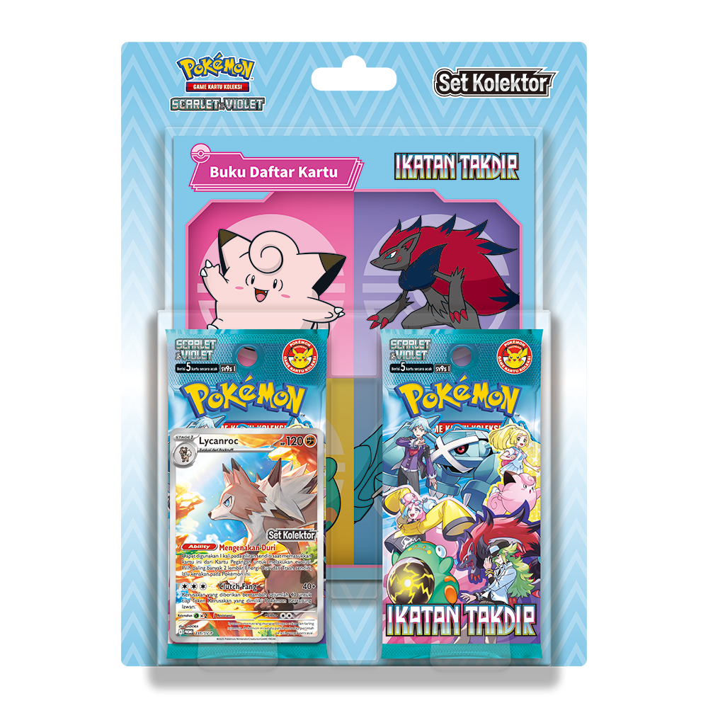 | Isi | ・Kartu Promo Lycanroc (hologram)…1 lembar ・Booster Pack “Ikatan Takdir”…10 pak ・Buku Daftar Kartu “Ikatan Takdir”…1 jilid |