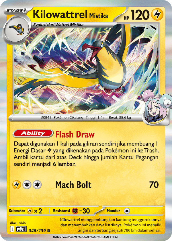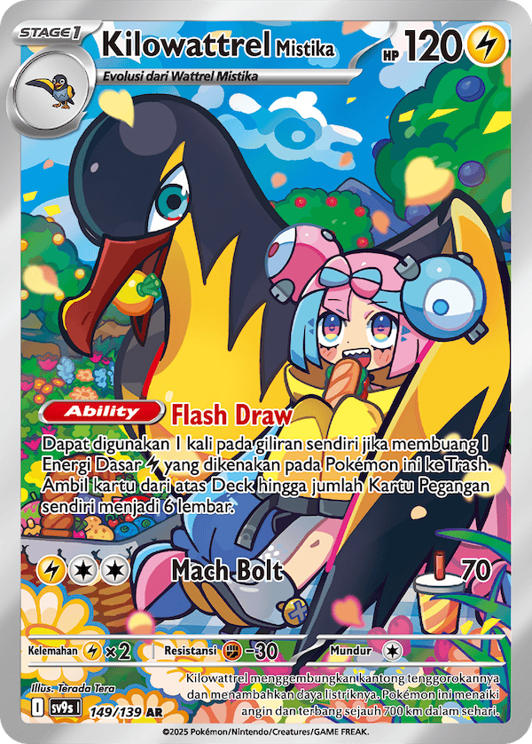 Ability Streamer Elektrik dapat mengenakan Energi Dasar Listrik dari Kartu Pegangan pada Pokémon Mistika berkali-kali pada giliran sendiri!