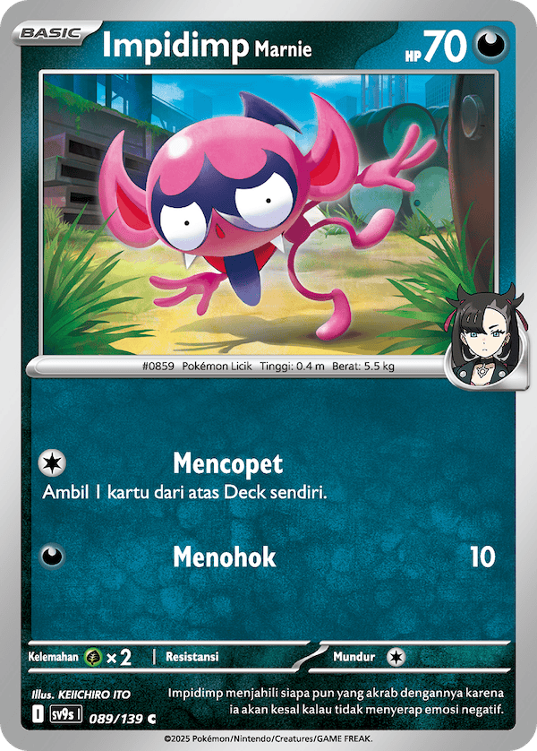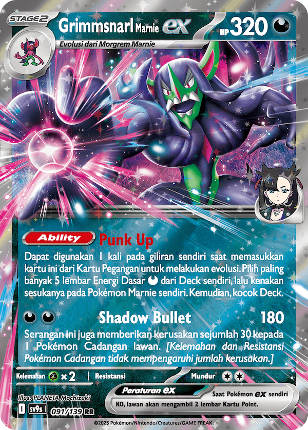 Kombinasikan dengan Ability Punk Up Grimmsnarl Marnie ex untuk memberikan kerusakan besar!