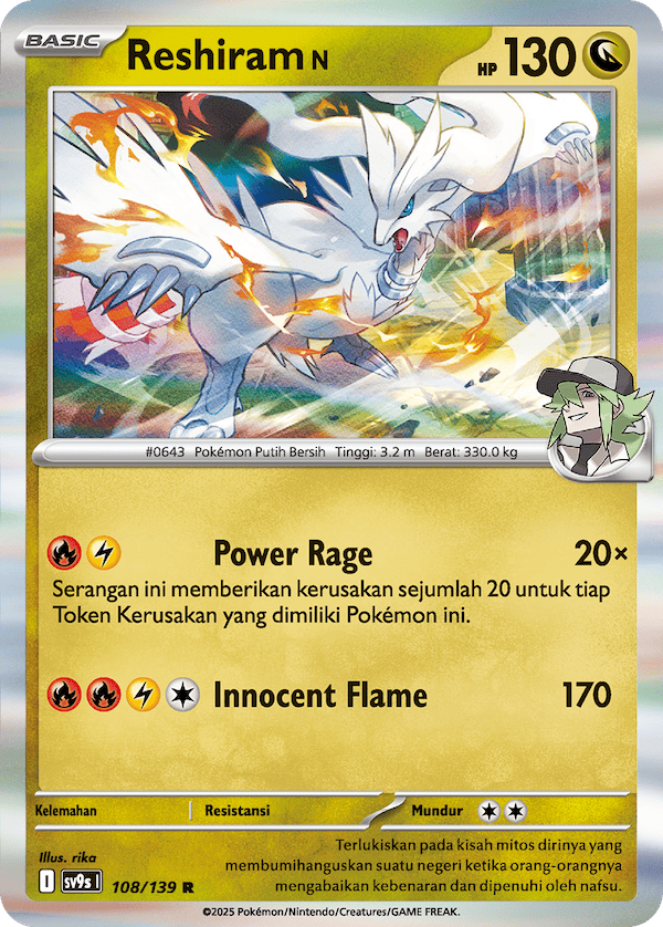 Dapat memilih 1 lembar Energi Dasar dari Trash sendiri, lalu mengenakannya pada Pokémon N di Cadangan!