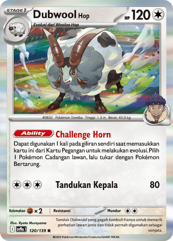 Saat memasukkan kartu ini dari Kartu Pegangan untuk melakukan evolusi, Ability Challenge Horn dapat digunakan untuk memilih 1 Pokémon Cadangan lawan, lalu menukarnya dengan Pokémon Bertarung!