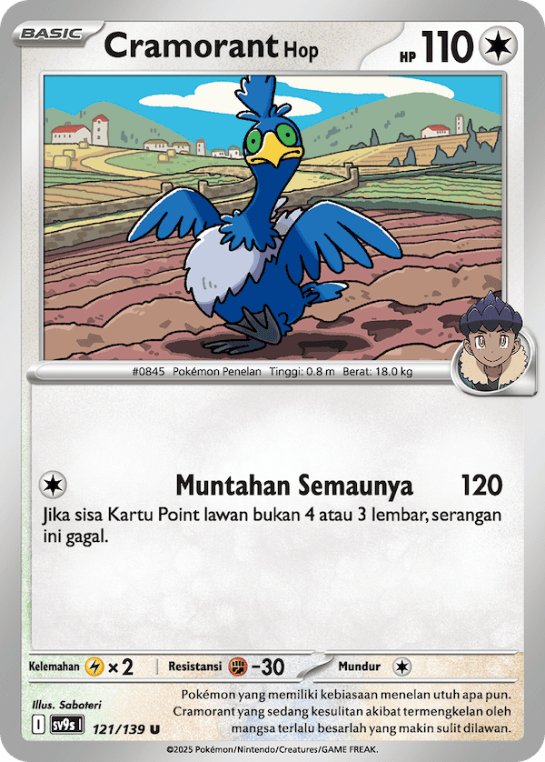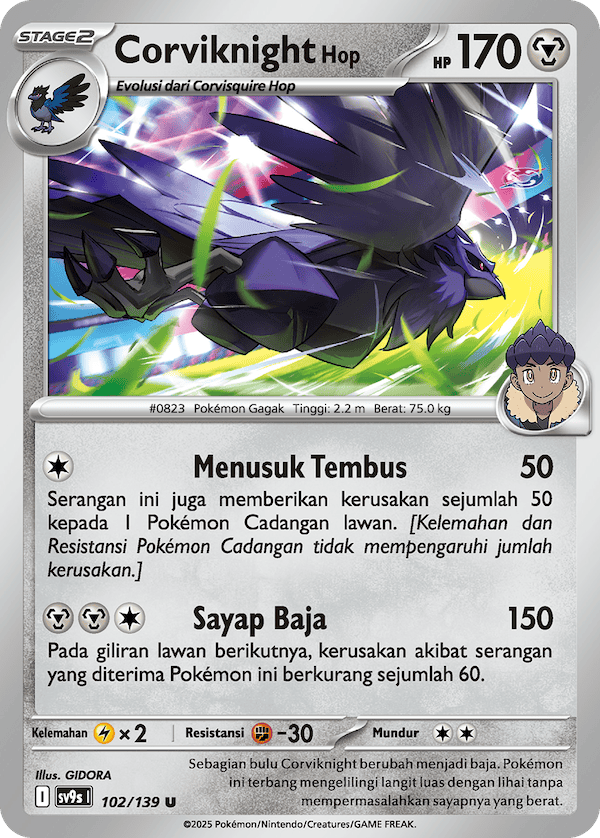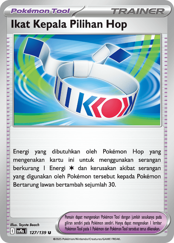 Energi yang dibutuhkan oleh Pokémon Hop yang mengenakan kartu ini untuk menggunakan serangan berkurang 1 Energi Bening, tambah lagi kerusakan akibat serangan yang digunakan oleh Pokémon tersebut kepada Pokémon Bertarung lawan bertambah sejumlah 30!