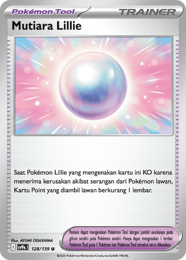 Saat Pokémon Lillie yang mengenakan kartu ini KO karena menerima kerusakan akibat serangan dari Pokémon lawan, Kartu Point yang diambil lawan berkurang 1 lembar!