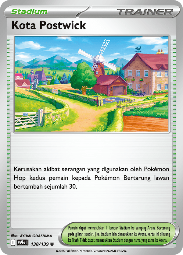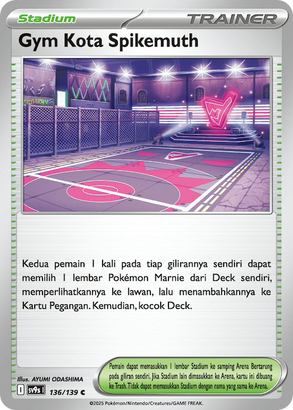 Stadium yang membuat kedua pemain 1 kali pada tiap gilirannya sendiri dapat menambahkan 1 lembar Pokémon Marnie dari Deck ke Kartu Pegangan!