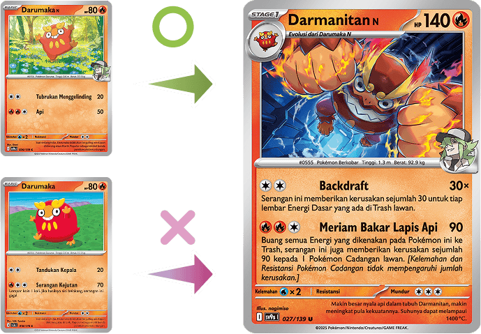 Pemain dapat menumpukkan Darmanitan N pada Darumaka N dan mengevolusikannya, tetapi itu tidak dapat dilakukan pada Darumaka, jadi berhati-hatilah!