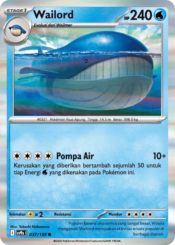 Serangan Pompa Air memberikan kerusakan sejumlah 10 ditambah kerusakan sejumlah 50 untuk tiap Energi Air yang dikenakan pada Pokémon ini!