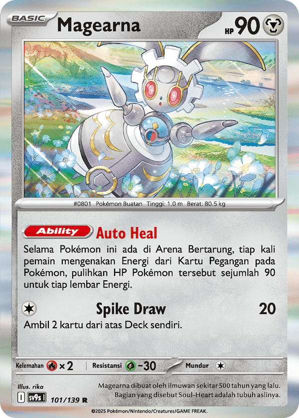 Ability X-Boot dapat digunakan 1 kali pada giliran sendiri untuk memilih Energi Dasar Psychic dan Energi Dasar Logam masing-masing paling banyak 1 lembar dari Deck sendiri, lalu mengenakannya sesukanya pada Pokémon Psychic atau Logam sendiri!