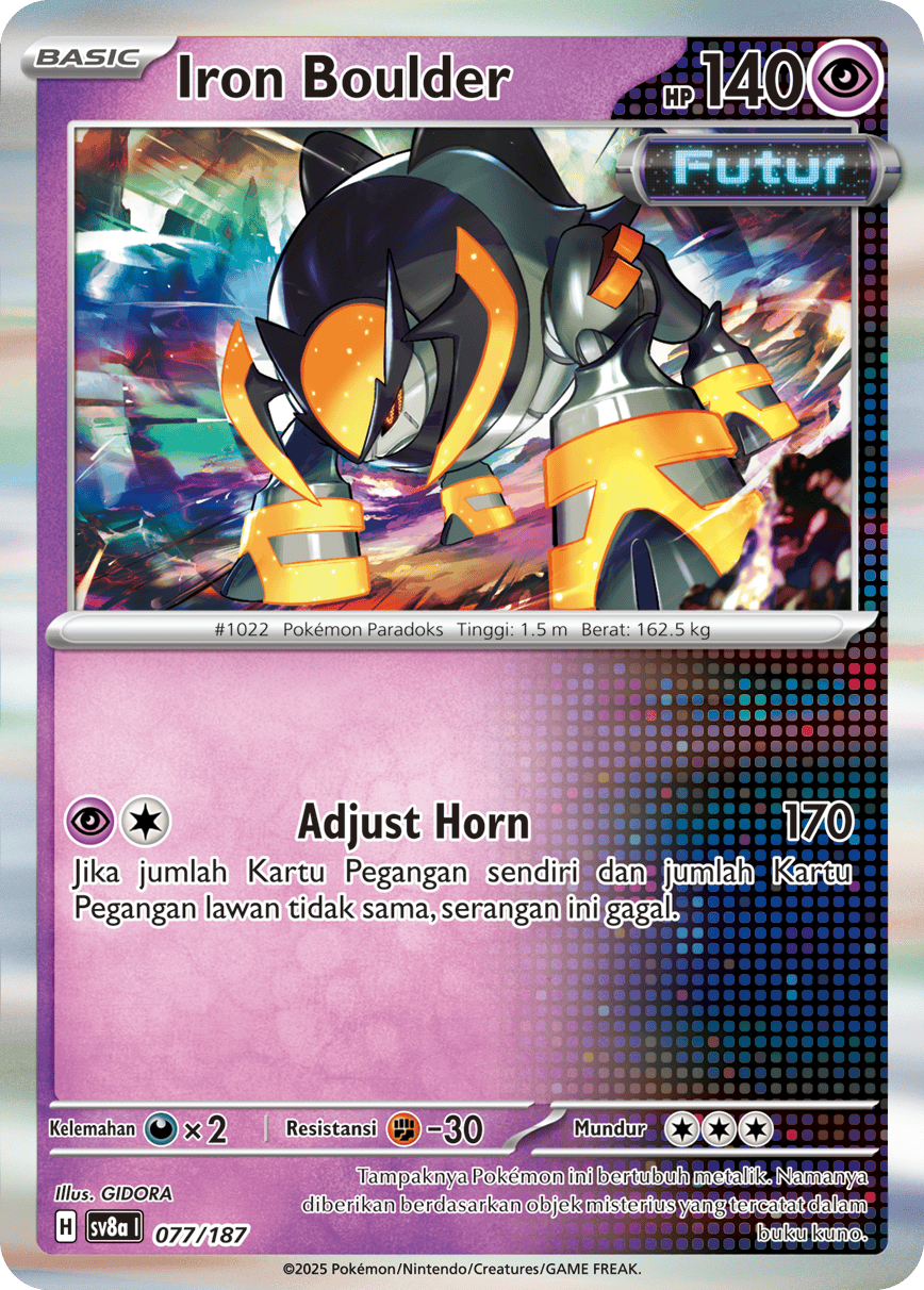 Tampaknya Pokémon ini bertubuh metalik. Namanya diberikan berdasarkan objek misterius yang tercatat dalam buku kuno.