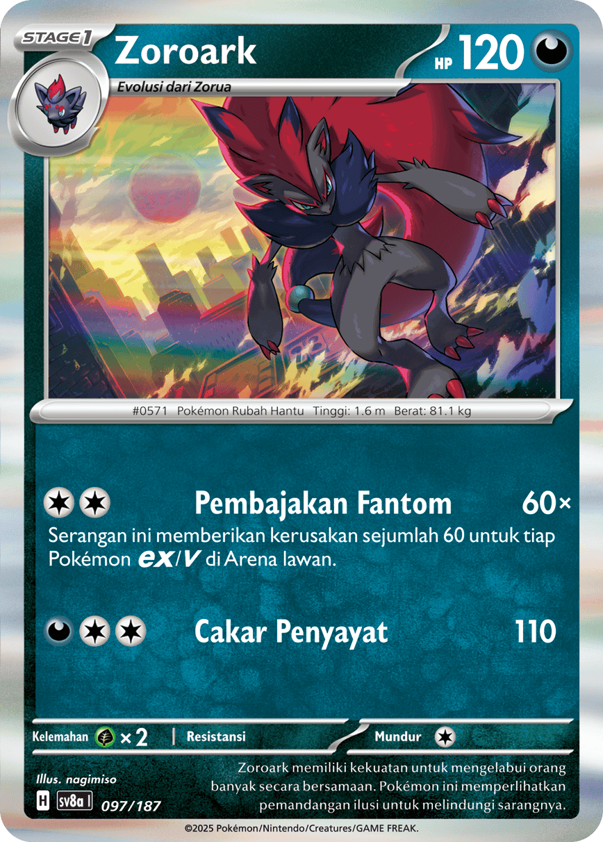 Zoroark memiliki kekuatan untuk mengelabui orang banyak secara bersamaan. Pokémon ini memperlihatkan pemandangan ilusi untuk melindungi sarangnya.