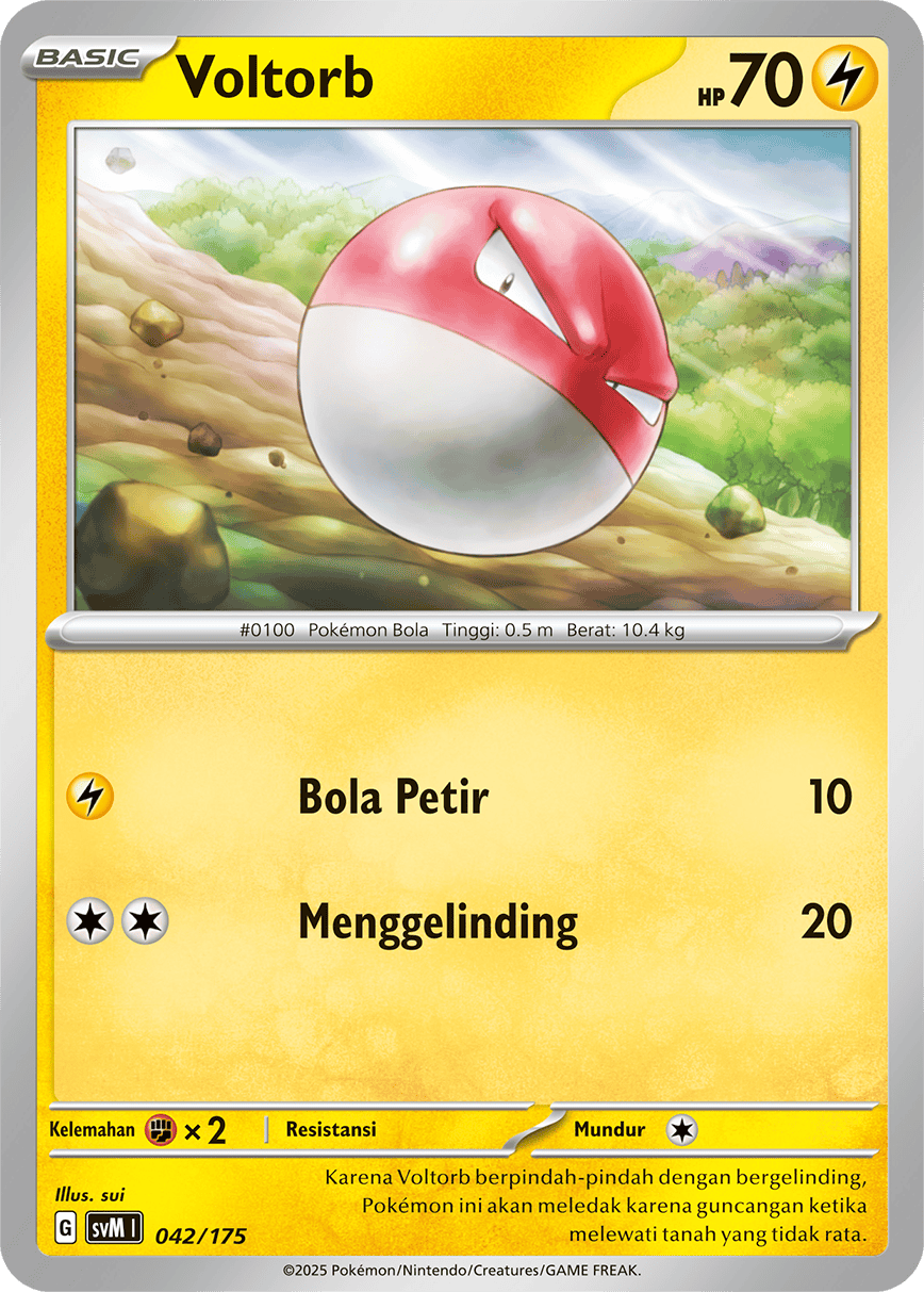 Karena Voltorb berpindah-pindah dengan bergelinding, Pokémon ini akan meledak karena guncangan ketika melewati tanah yang tidak rata.
