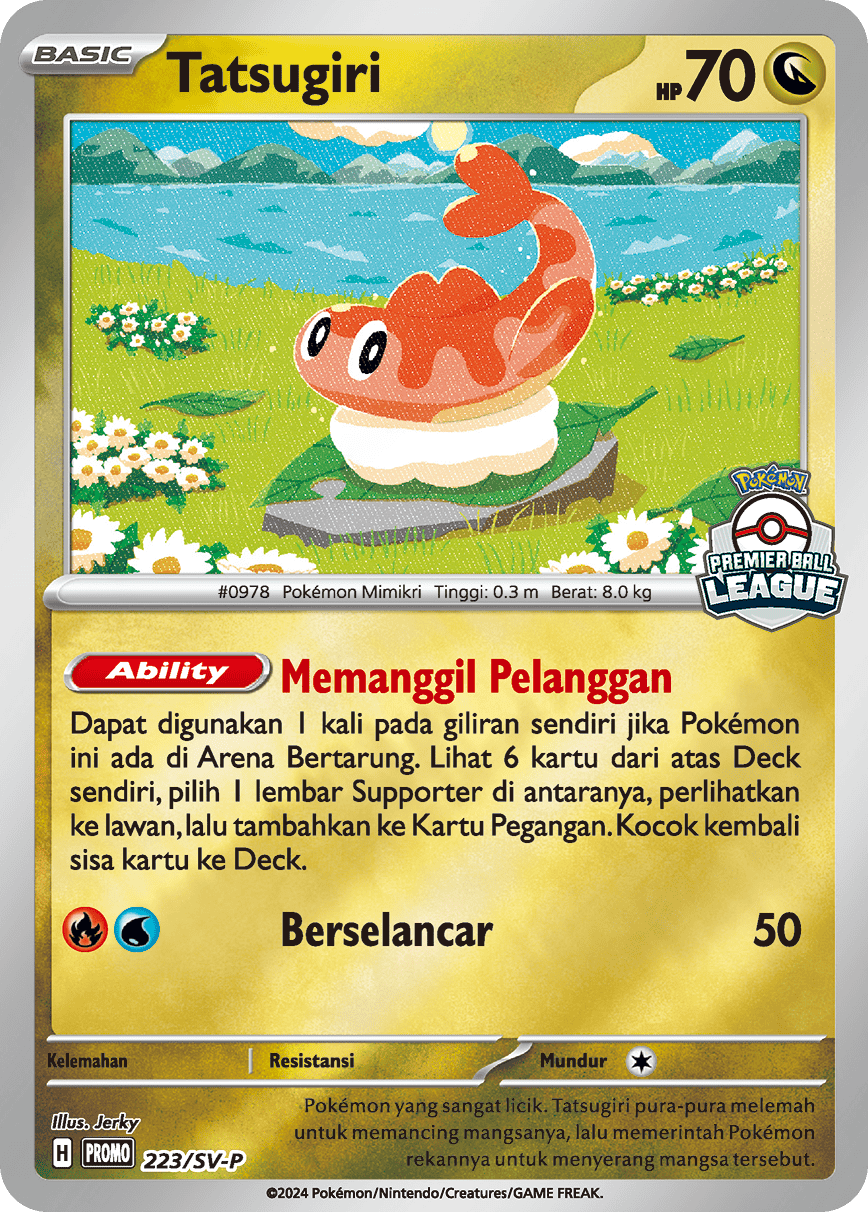 Pokémon yang sangat licik. Tatsugiri pura-pura melemah untuk memancing mangsanya, lalu memerintah Pokémon rekannya untuk menyerang mangsa tersebut.