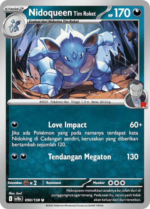 Jika ada Pokémon yang pada namanya terdapat kata Nidoking di Cadangan sendiri, kerusakan yang diberikan bertambah sejumlah 120.