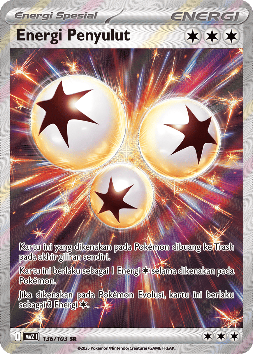 Kartu ini yang dikenakan pada Pokémon dibuang ke Trash pada akhir giliran sendiri. Kartu ini berlaku sebagai 1 Energi {Bening} selama dikenakan pada Pokémon. Jika dikenakan pada Pokémon Evolusi, kartu ini berlaku sebagai 3 Energi {Bening}.