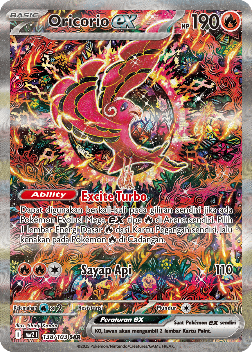 Dapat digunakan berkali-kali pada giliran sendiri jika ada Pokémon Evolusi Mega {ex} tipe {Api} di Arena sendiri. Pilih 1 lembar Energi Dasar {Api} dari Kartu Pegangan sendiri, lalu kenakan pada Pokémon {Api} di Cadangan.